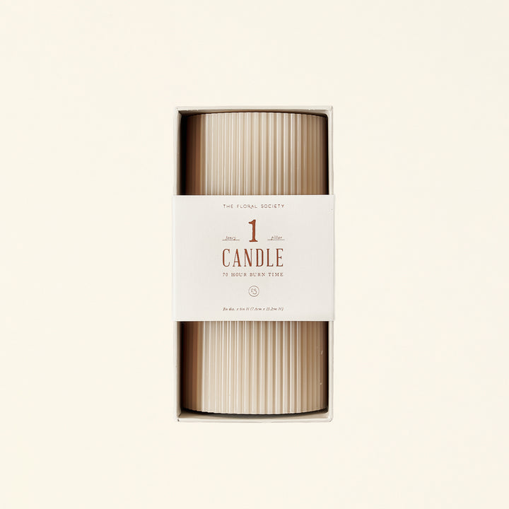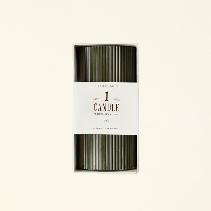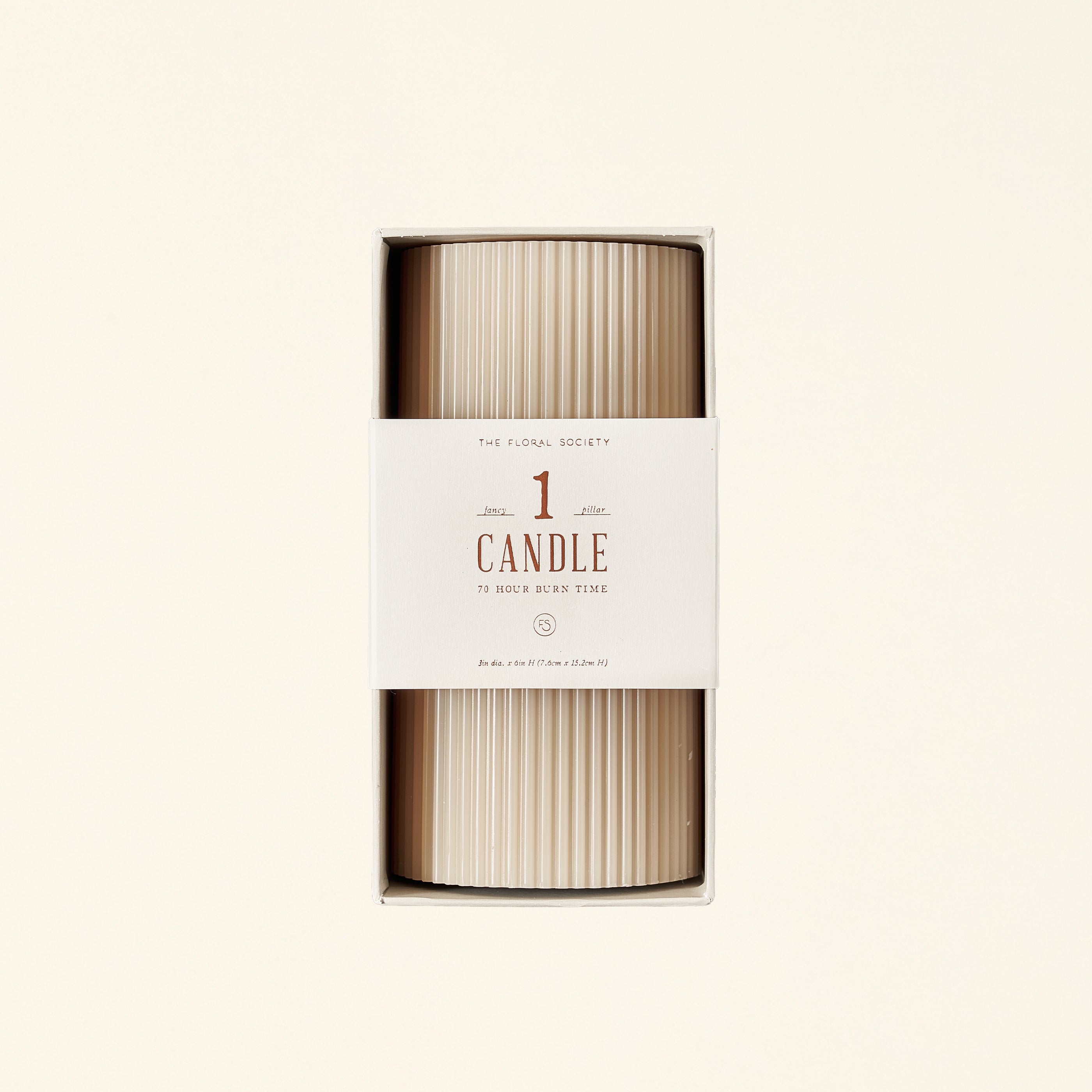 A modern take on a classic, our 3" x 6" Ribbed Pillar Candle embodies a superior depth of color and sophisticated texture. With a clean, minimalist design and a 70-hour burn time, this candle is both a beautiful and long-lasting addition to your home. Crafted with a cotton wick for a clean burn, subtle variations in color opacity and wax depth may occur, giving each candle a unique, artisanal feel. Choose from two rich colors to add a modern accent to your mantel or centerpiece.