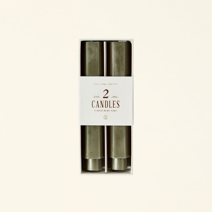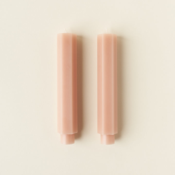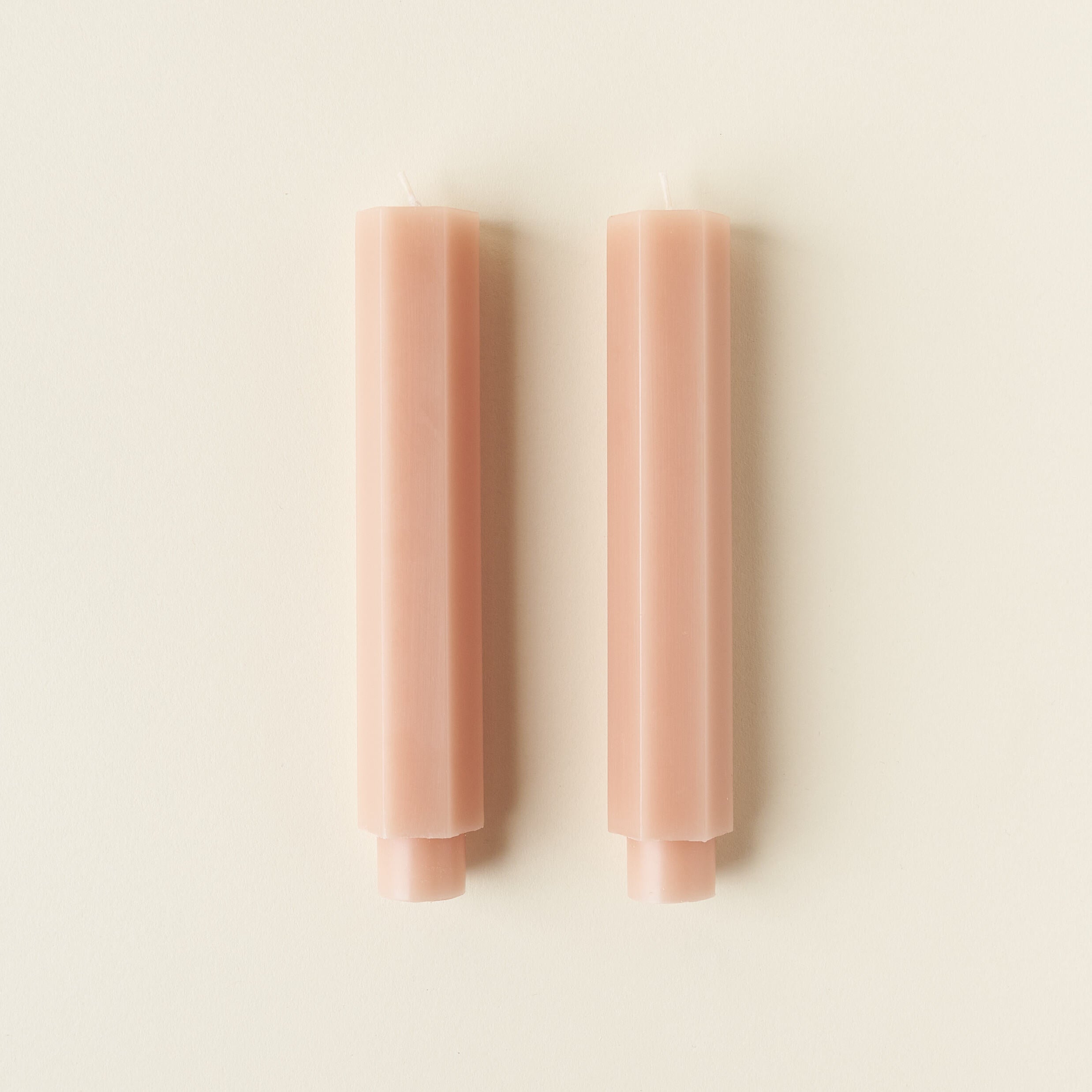 A study in sculptural and intentional design, these Hexagon Taper Candles are a beautiful accent for your home. Each piece is hand-molded from high-grade paraffin, creating a rich depth of color and a unique, faceted shape.