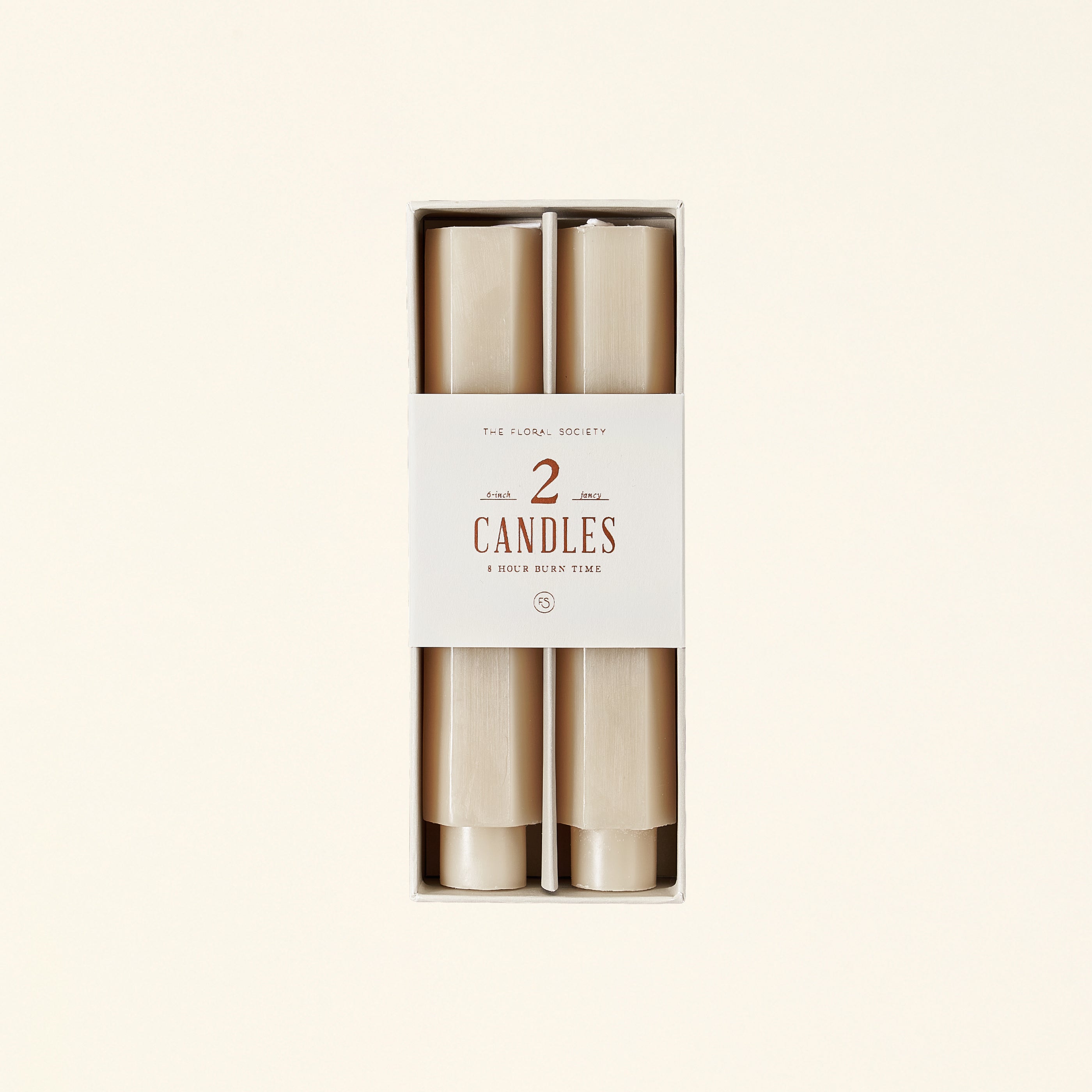 Fitted with a clean-burning cotton wick, each 6” candle is crafted to provide a peaceful, six-hour ambiance. With their subtle variations in color, these candles are a curated and authentic addition to any thoughtfully styled space.