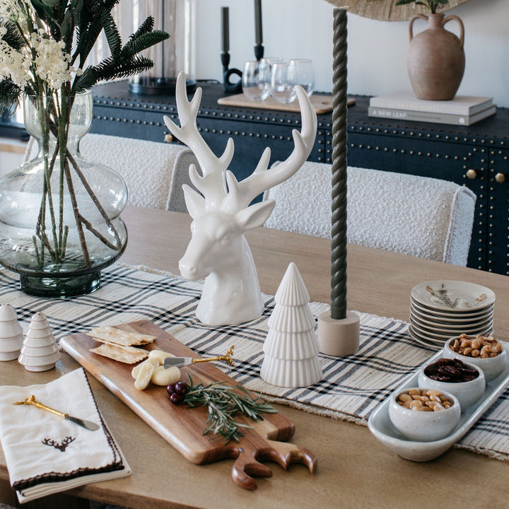 A beautiful way to add both whimsy and rustic charm to your table. Made of acacia wood, this paddle-style serving board has charming antlers serving as the handle, adding a beautiful touch of whimsy to your table. This serving board is perfect for displaying appetizers, cheeses, and more.