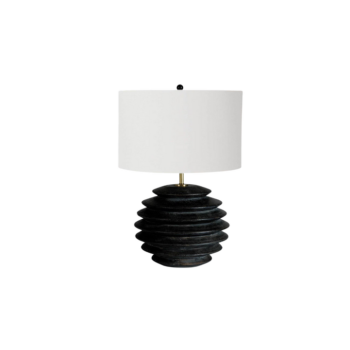 The Accordion Table Lamp Round features a beautifully crafted birch body with deep grooves and a rich ebony finish that highlights its natural grain. Topped with a natural linen shade, this lamp offers a refined contrast that enhances any interior. Its distinctive design combines artisanal detail with functional lighting, making it a sophisticated addition to your living space.