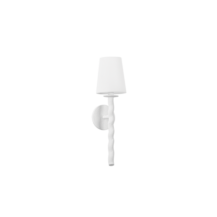 The Alvaro Wall Sconce features a distinctive helical stem design that adds a sophisticated touch to any space. Available in a Gesso White finish, it pairs elegantly with an off-white linen shade to provide soft, inviting illumination. Ideal for hallways, bedrooms, or other living areas, this sconce combines style and function seamlessly, enhancing your décor with refined transitional charm.