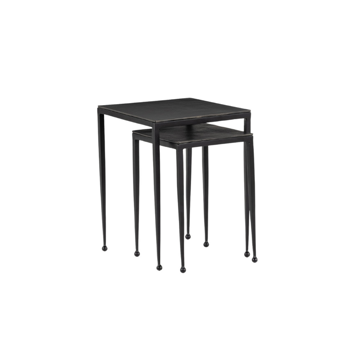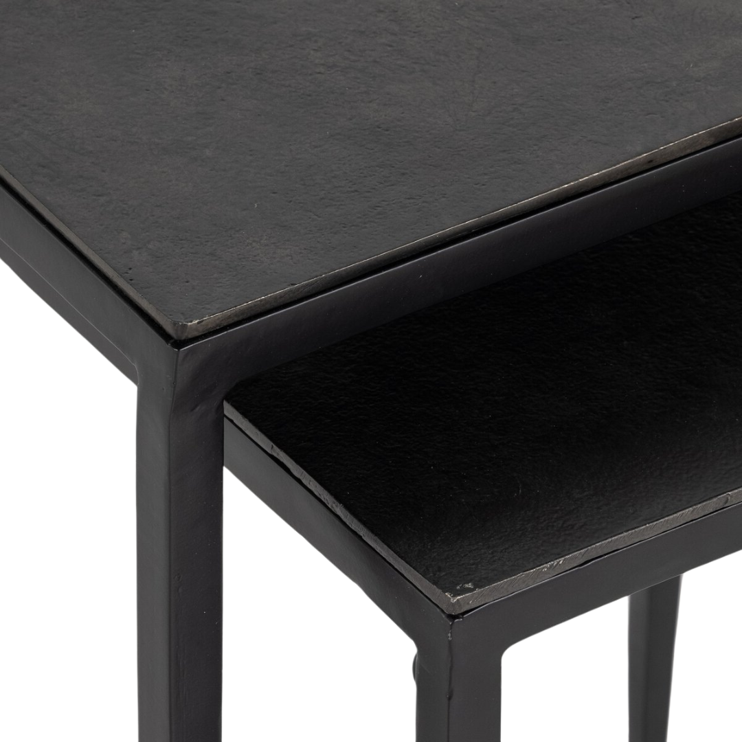 Discover the perfect balance of functionality and style with the Alyson Nesting Table. The tapered legs and rounded feet provide stability while the sleek aluminum tops, finished in raw black, add a touch of modern elegance. This table is perfect for any space in need of a functional addition.
