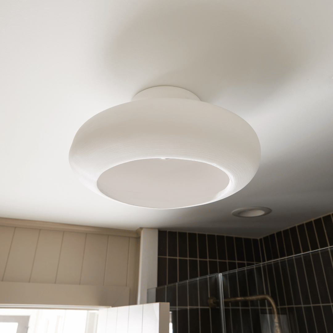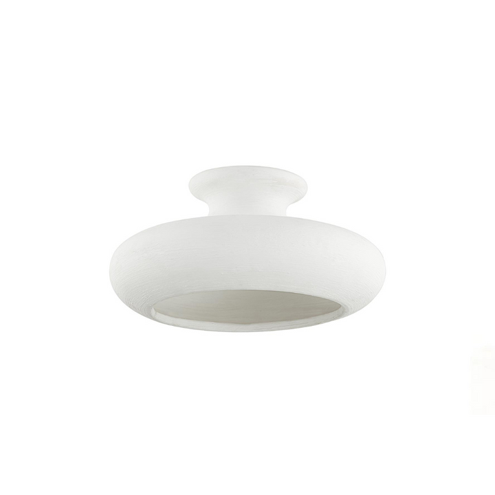 Introducing the Annie Semi-Flush Mount, a modern and inviting addition to any space. Its finely textured white ceramic shade exudes an earthy feel, while emitting a soothing and calming glow when lit. Part of the Becki Owens collection, this fixture is reminiscent of a hand-thrown bowl and adds a touch of elegance to your home.