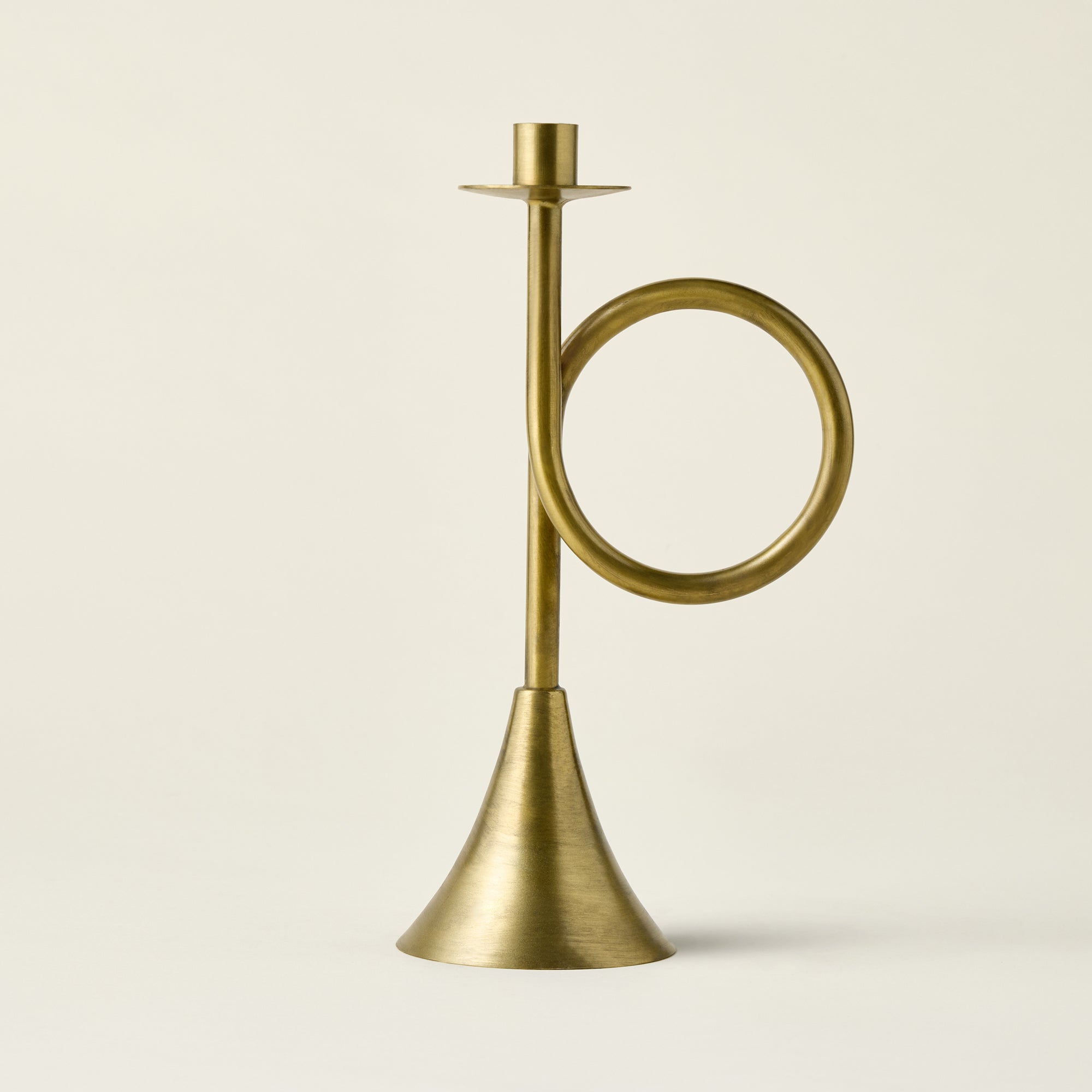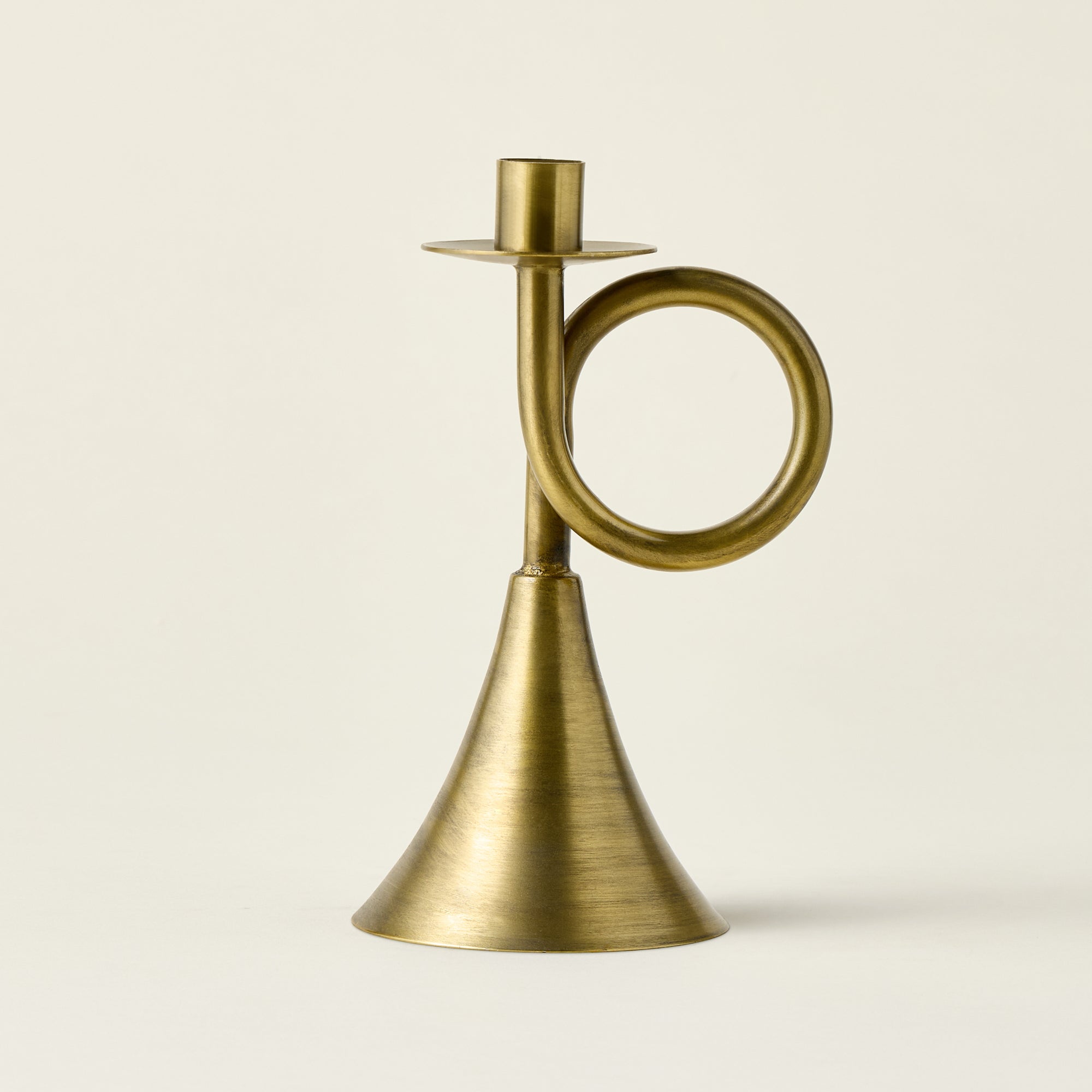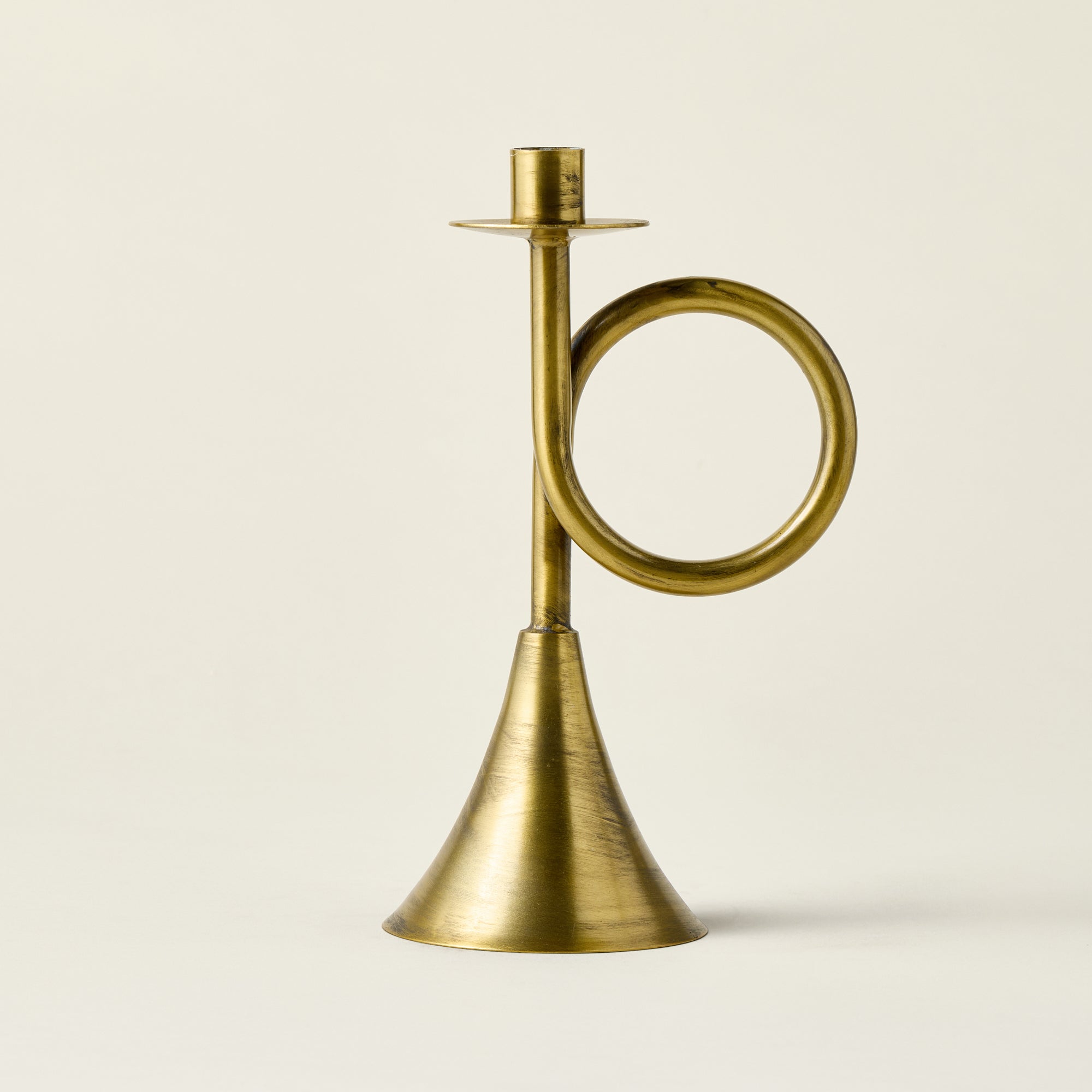 These Antique Brass Trumpet Taper Holders bring a timeless elegance to your holiday decor. Crafted in the shape of vintage trumpets, they perfectly complement festive Christmas settings with their distinctive design. Arrange on a mantel to create a unique yuletide display that harmonizes tradition with artistic flair.