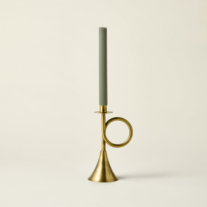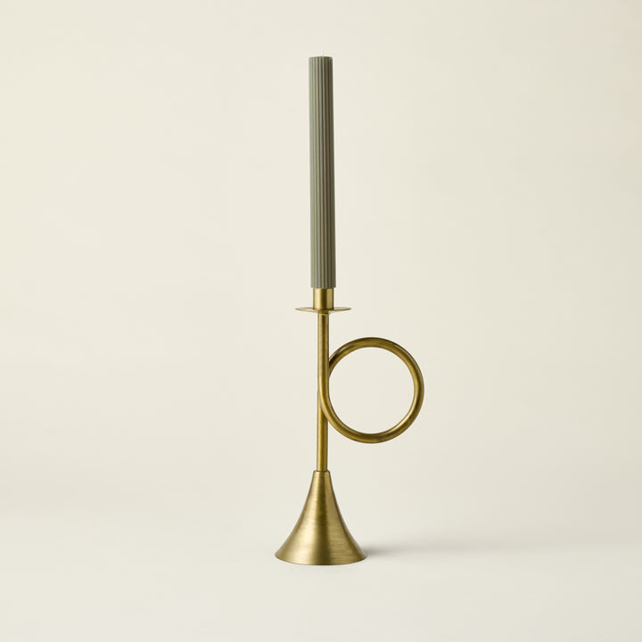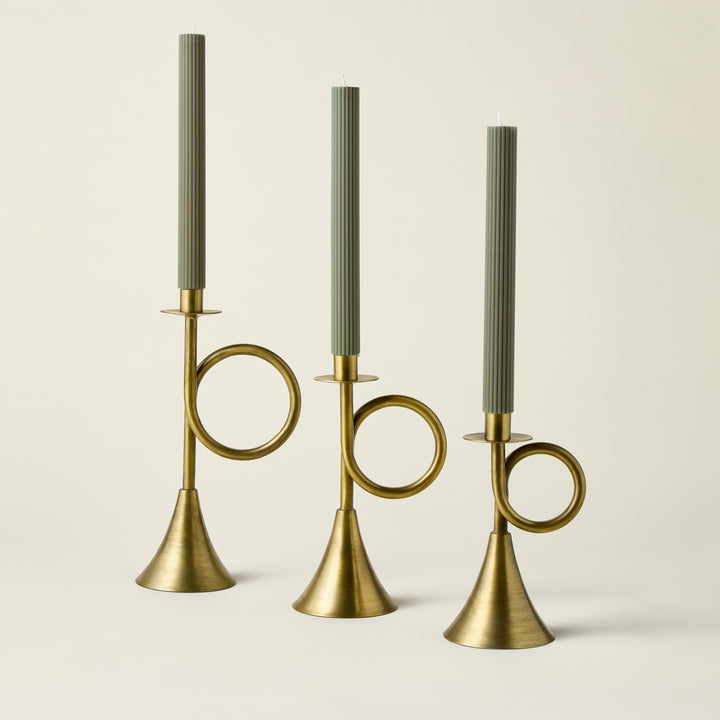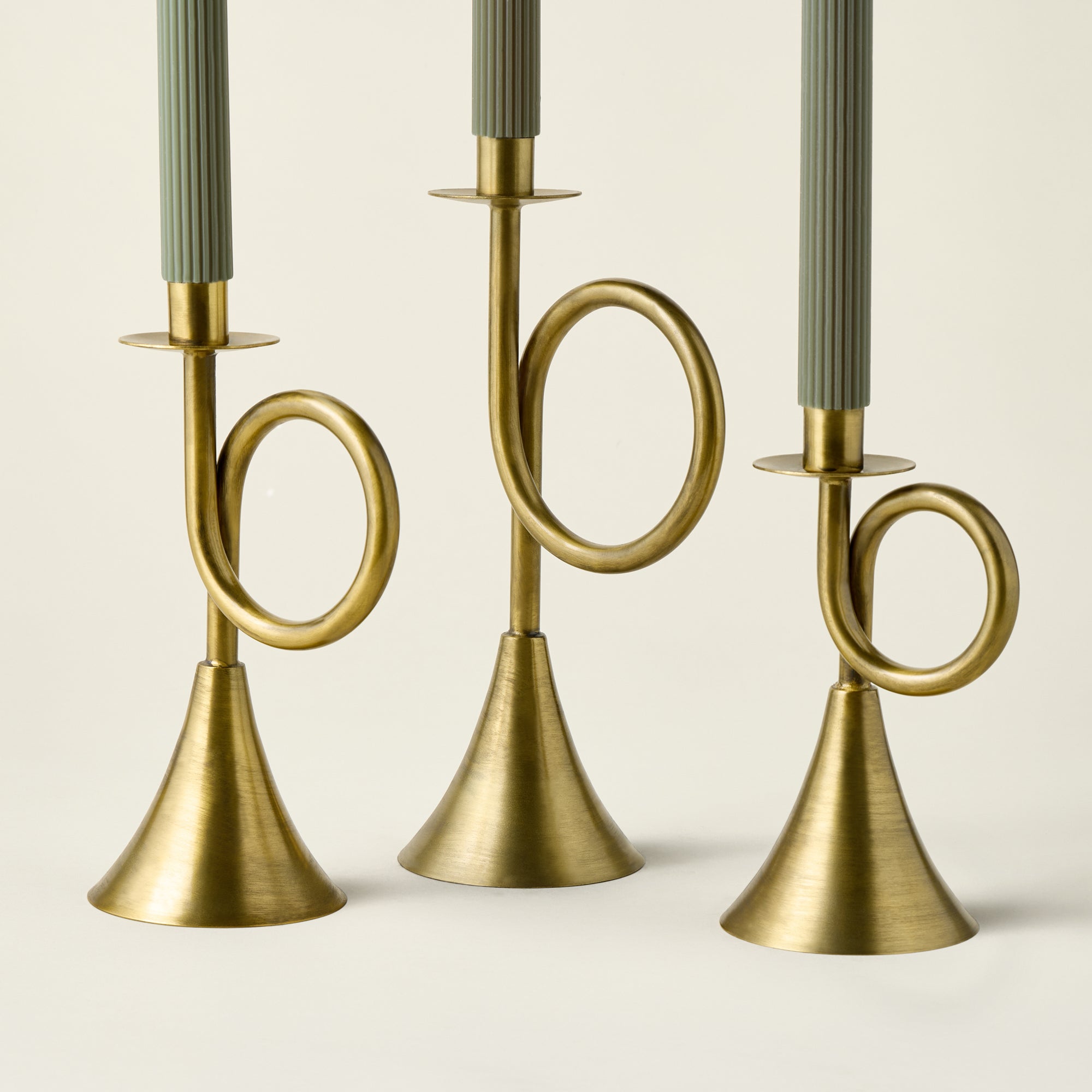 These Antique Brass Trumpet Taper Holders bring a timeless elegance to your holiday decor. Crafted in the shape of vintage trumpets, they perfectly complement festive Christmas settings with their distinctive design. Arrange on a mantel to create a unique yuletide display that harmonizes tradition with artistic flair.