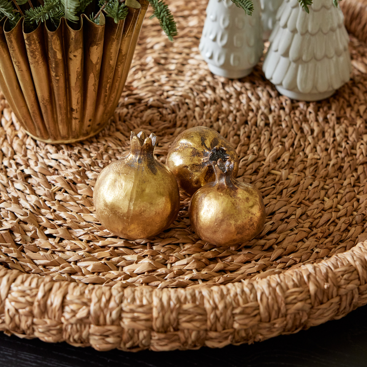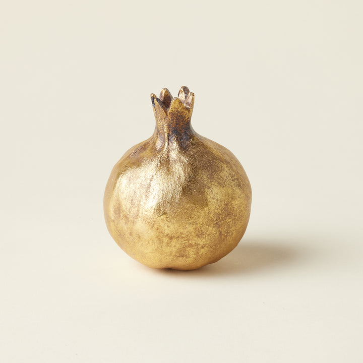 Crafted with detail, this Antique Gold Pomegranate is a festive addition to any home during the holidays. Made from resin with an antique gold finish, this pomegranate is a timeless piece that adds a touch of charm to any vessel or displayed on its own.
