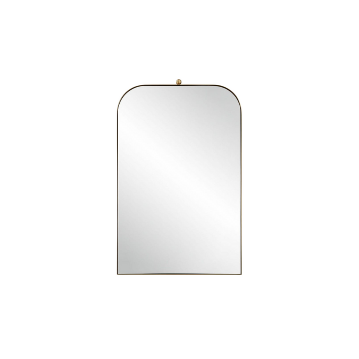 Encased in a sleek stainless steel frame with a lustrous brass plated finish, the Arden Arch Mirror combines durability with refined elegance. Its floating polished-edge mirror enhances depth and light reflection, while the classic ball finial adds a timeless detail. This mirror is designed to elevate any space with expert craftsmanship and sophisticated style.