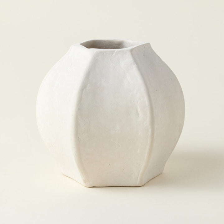 Elevate your home decor with the chic and unique Ariah Vase. Crafted from paper mache, each piece boasts its own natural imperfections, adding character to any space. Its sculptural oat hue and smooth finish make it the perfect accent piece, ideal for showcasing faux botanicals. Note: Not intended for water use.