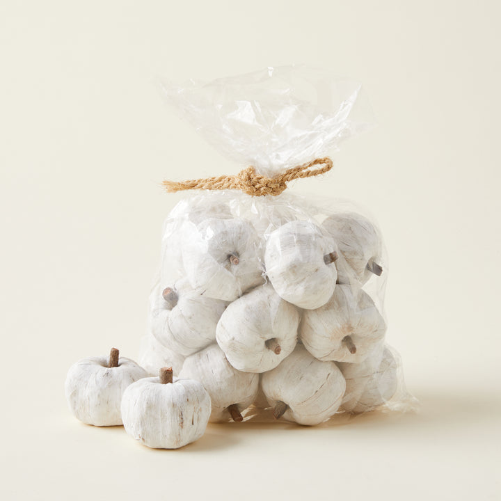 Add a subtle touch of autumn charm to your space with this curated bag of mini faux pumpkins. Crafted to resemble dried gourds, their organic texture and muted color palette are perfect for creating an effortless, layered fall look. Use them to fill a decorative bowl, arrange them on a mantel, or scatter them along a tablescape to add a cozy, seasonal feel to your home. Each set provides a beautiful, lasting accent that can be enjoyed year after year.