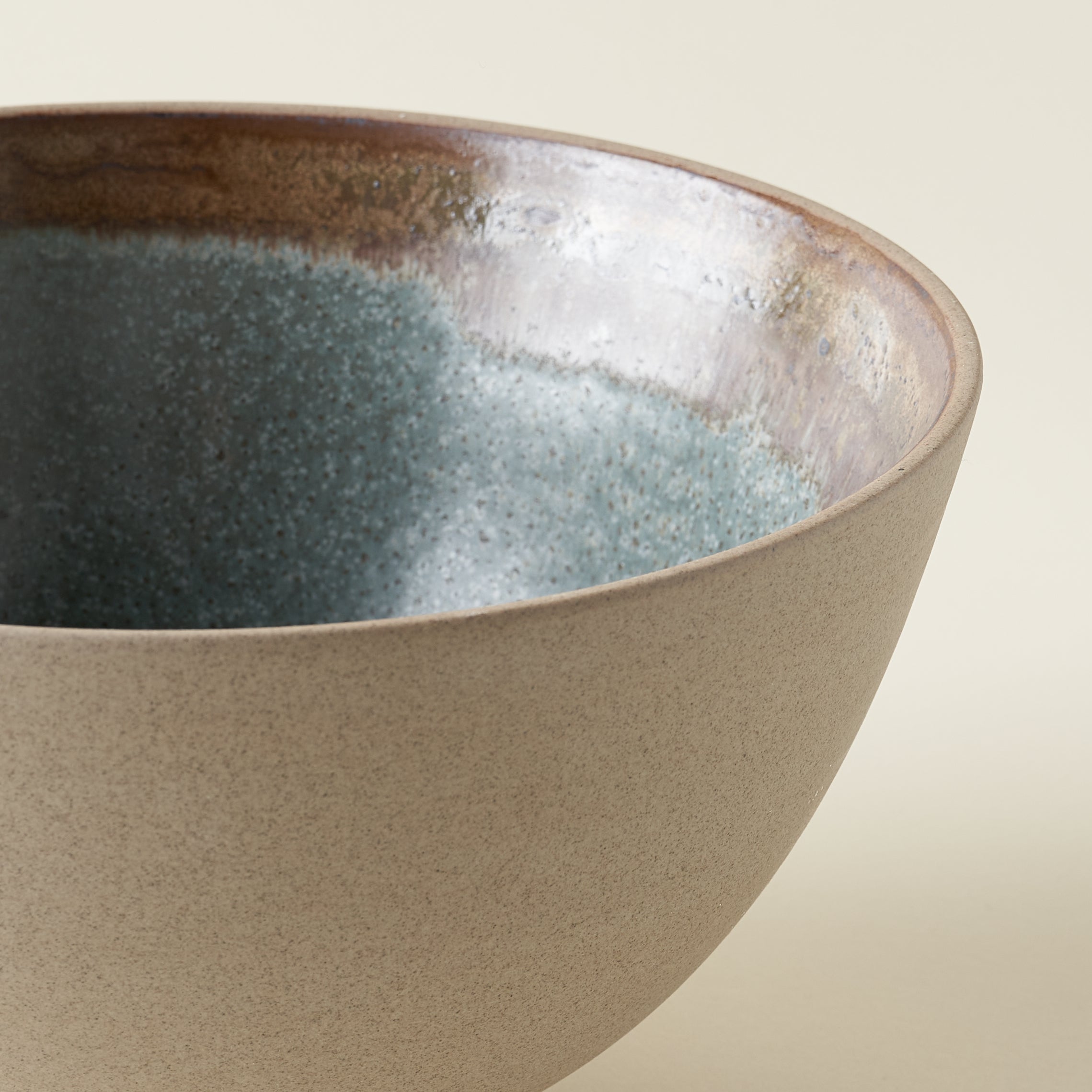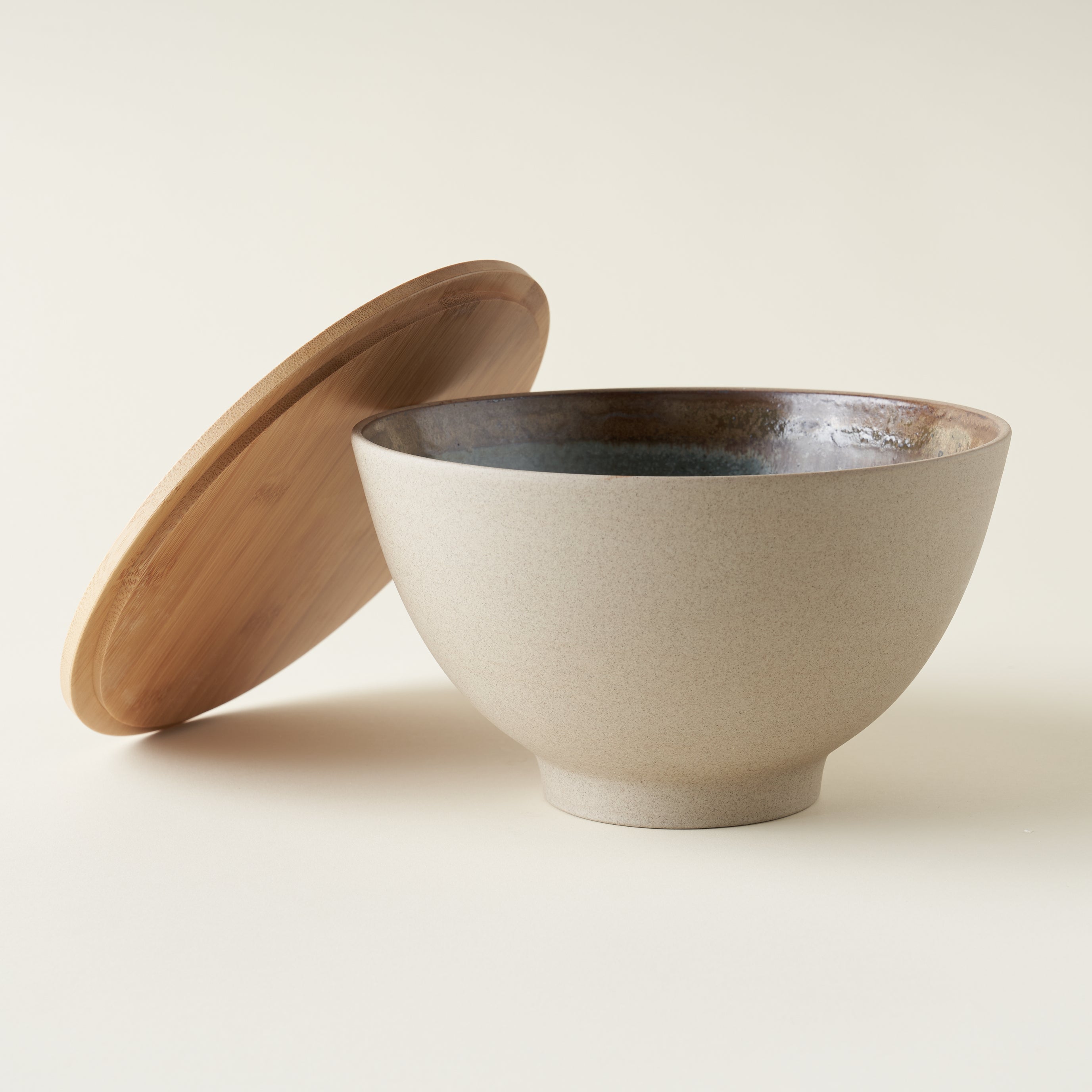 Experience the ultimate combination of style and functionality with this Bamboo Lidded Bowl. Crafted from durable stoneware, this bowl features a beautiful reactive glaze in hues of cream and blue, making each piece unique. The bamboo lid adds a stylish touch while keeping food fresh. Elevate your food storage with this must-have piece!