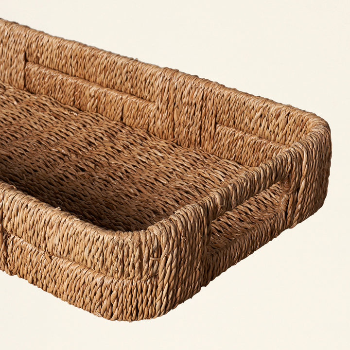 This eye-catching Bankuan Tray adds instant style to any room with its hand-woven design. An effortless way to accent any décor, its natural texture creates a cozy setting perfect for entertaining. Perfect on an entryway table, ottoman, or bench. Bring a touch of luxurious warmth to your home!