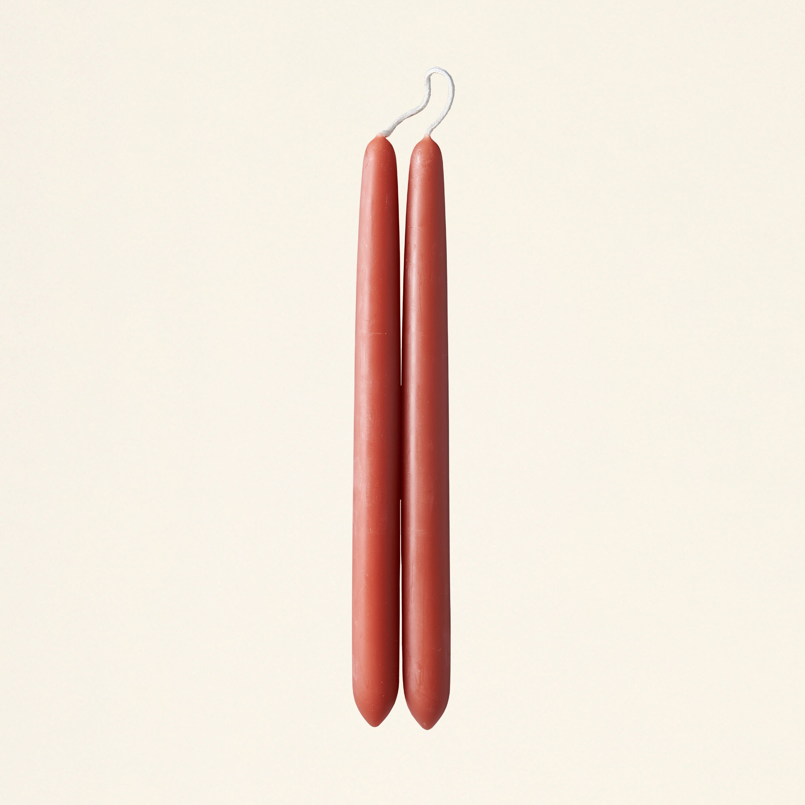 Dipped Beeswax Candles sold in a pair. Each candle is handcrafted with care and dipped over 25 times. Why we love beeswax: When burned, beeswax candles emit negative ions that purify the air making it the cleanest burning wax available. Beeswax naturally smells like honey and wildflowers! Choose between four colors.