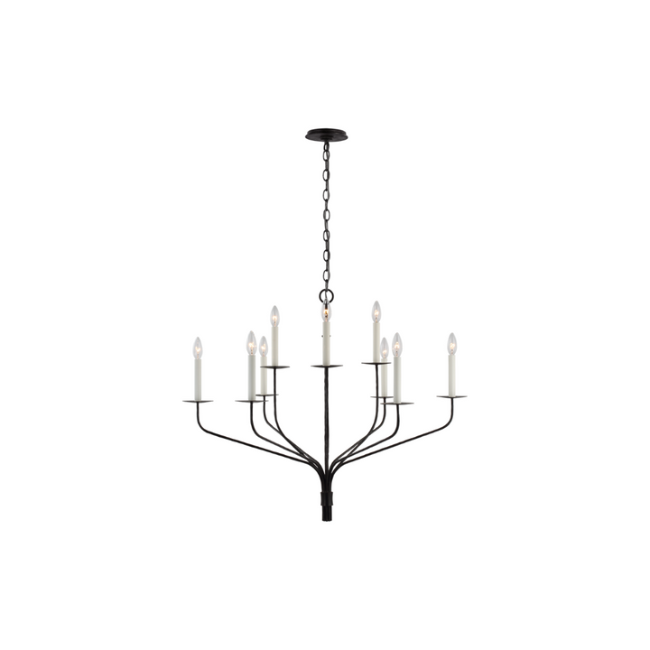 The Belfair Two-Tier Chandelier, inspired by Shaker simplicity and designed by Ian K. Fowler, emphasizes essential form with slender, artisanal-finished arms that elegantly support minimalist, candle-like lights. Its refined, understated design brings a sophisticated yet effortless ambiance, making it an ideal centerpiece for living rooms and entryways seeking a balance of elegance and restraint.