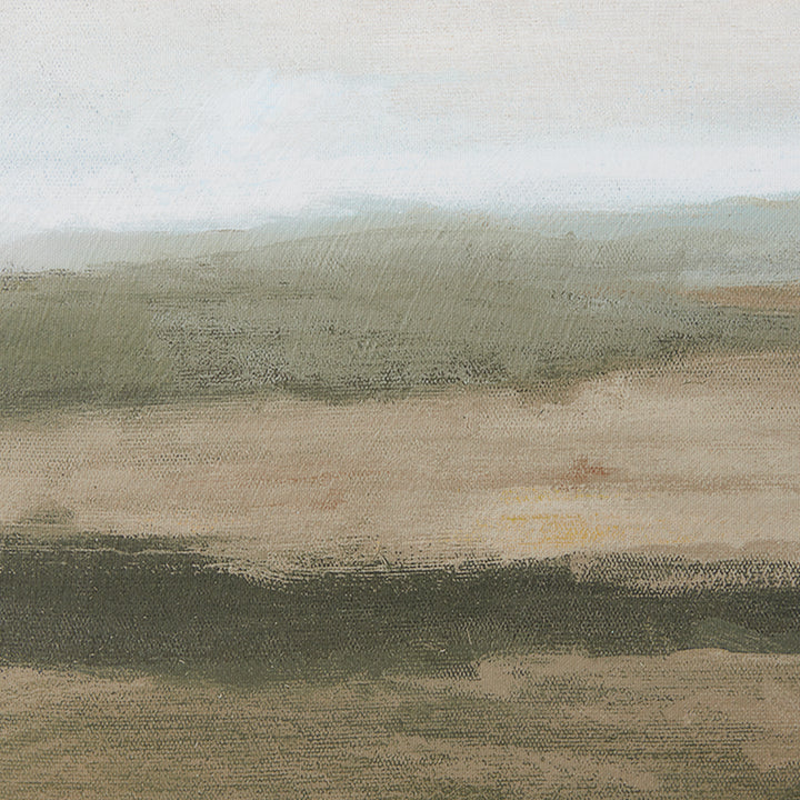 Bellow I from the Kate Marker x Leftbank Art collection, exemplifies an endless landscape depicted with vibrant shades of green and earthy brown. This gallery-wrapped canvas extends upward, showcasing a towering sky adorned with thick, textural clouds. Complete the look with Bellow I & II; together, they inspire a deep appreciation for the vast and untamed beauty of nature, creating a cohesive visual narrative across the two panels.