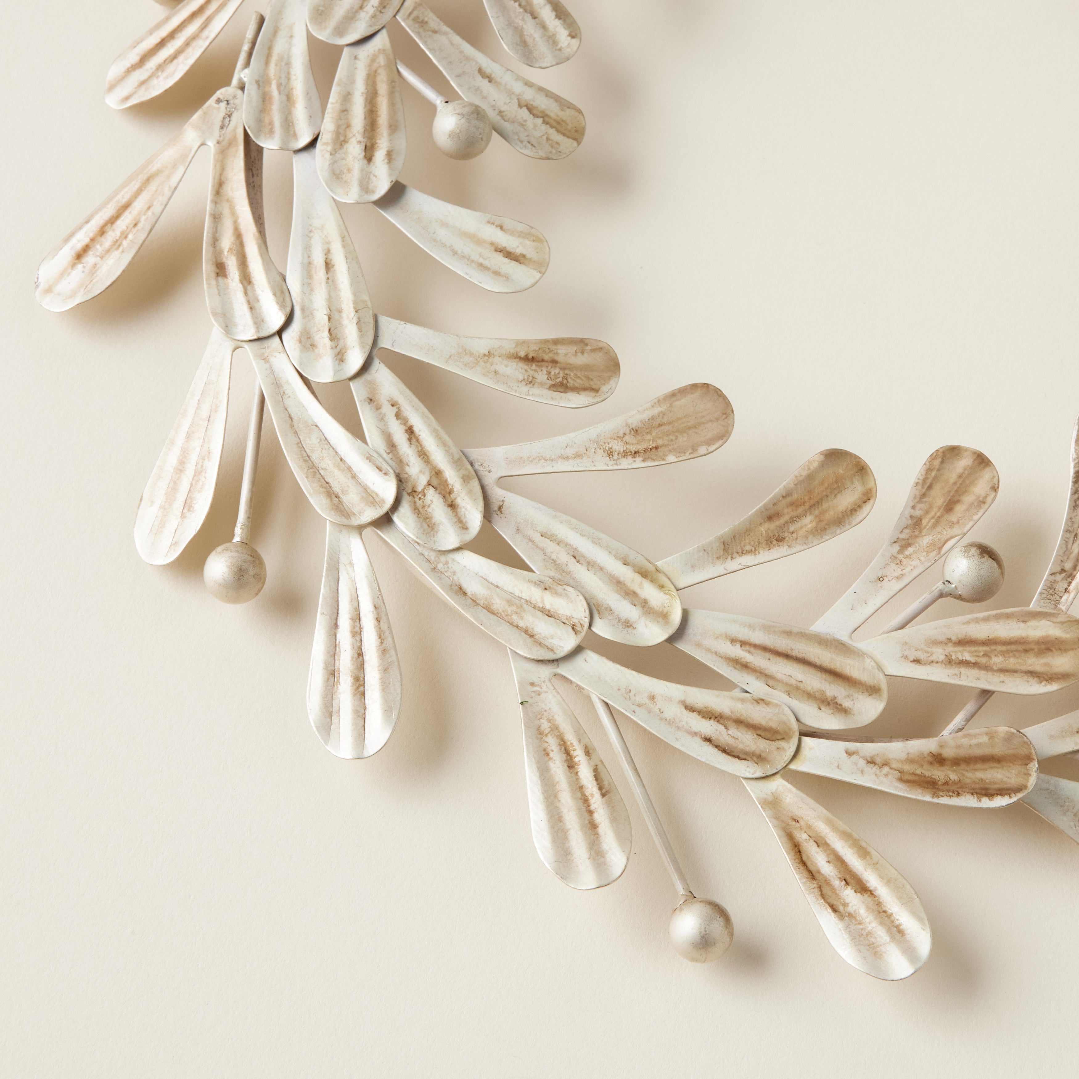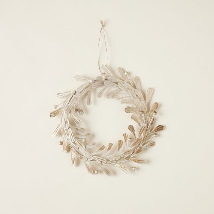 This Berry Wreath is a charming addition to any holiday décor. Made from metal, it features delicate leaves and berries in a rustic distressed pewter finish. Durable and timeless, this wreath is a festive accent that adds warmth and character to any vignette.
