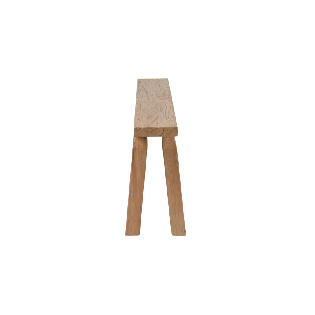 Crafted from natural-finished reclaimed elm, the Blair Accent Bench showcases French farmhouse style with its exaggerated joints and dowels. Perfect for adding a touch of character to any space.