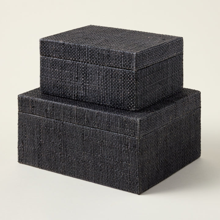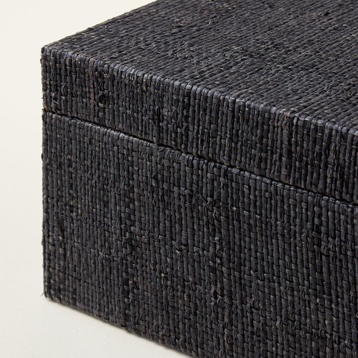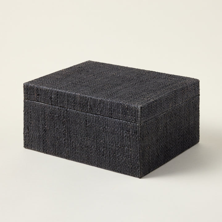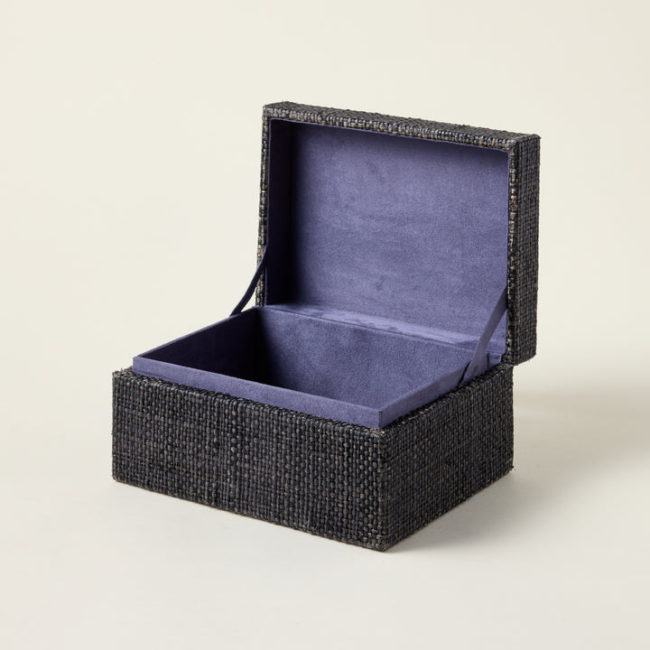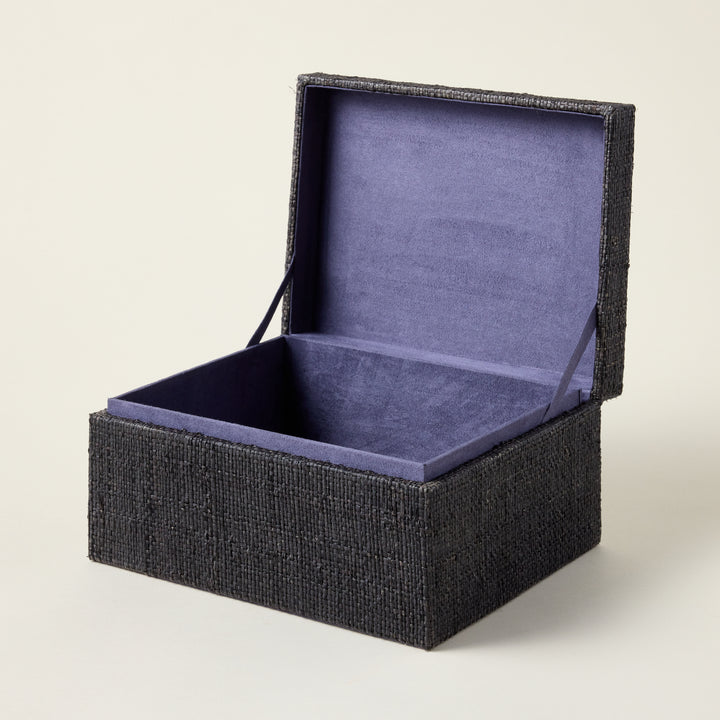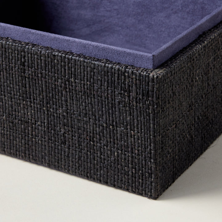 A thoughtfully made essential, this storage box combines natural materials in a deep blue hue for a stylish and durable solution. Its handcrafted design and beautiful organic texture from woven raffia and chambray make it a one-of-a-kind piece. Ideal for adding a touch of refined texture and effortless organization to any room, this artisanal box is a timeless and beautiful addition to your home.