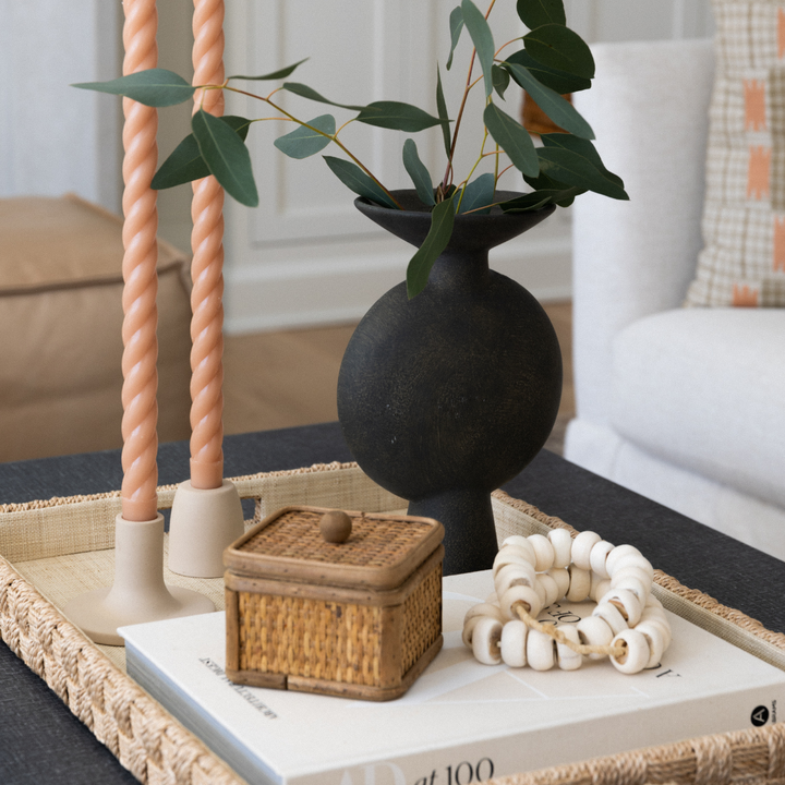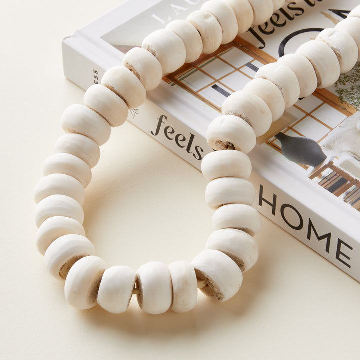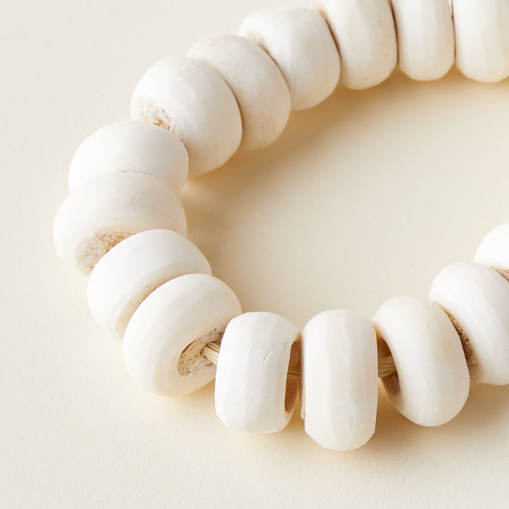 These beautiful White Bone Beads, handcrafted in Kenya, Africa, are truly one-of-a-kind. Each bead is unique, with a varying wood core and a finish that ranges from matte to slightly shiny. These beads are a beautiful and artful way to add a touch of visual interest and texture to any vignette.