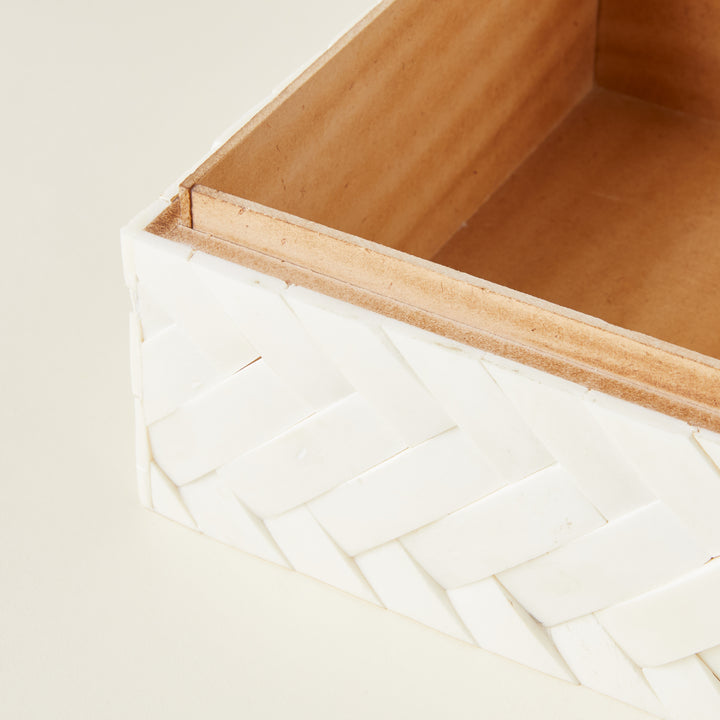 A beautiful way to add timeless elegance to any space. This Bone Keepsake Box features an elegant inlaid bone design that complements any home decor. Perfect for storing small items, this stylish and functional box adds a touch of artful charm to any space.