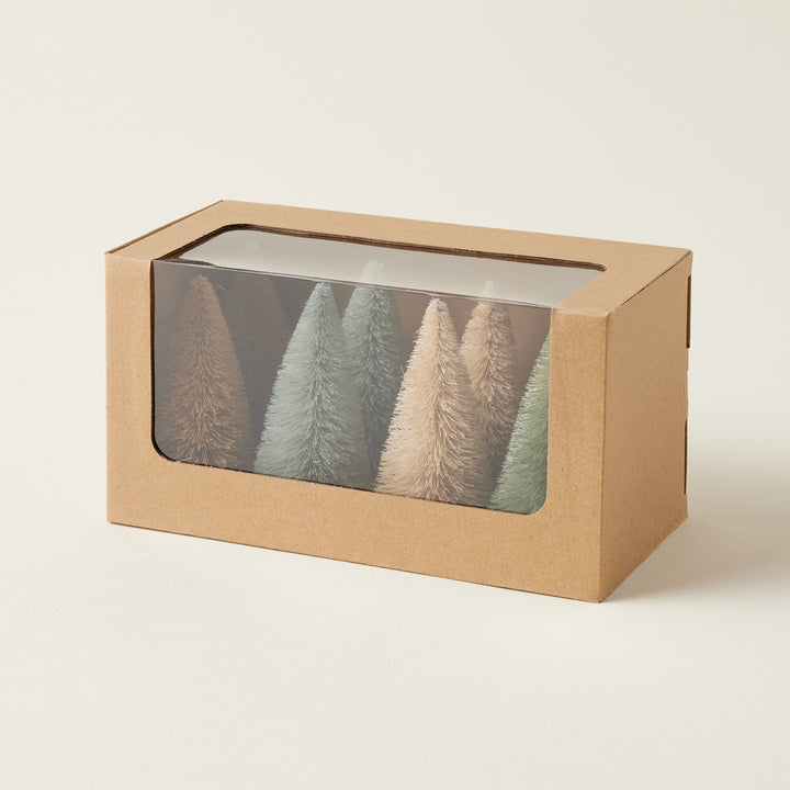 Add a touch of holiday magic to your home with our Bottle Brush Tree Set. A festive accent that brings warmth and whimsy to your space, this assortment of bottle brush trees in shades of neutral and green is perfect for mantel, tabletop and bookshelf displays during the holidays.