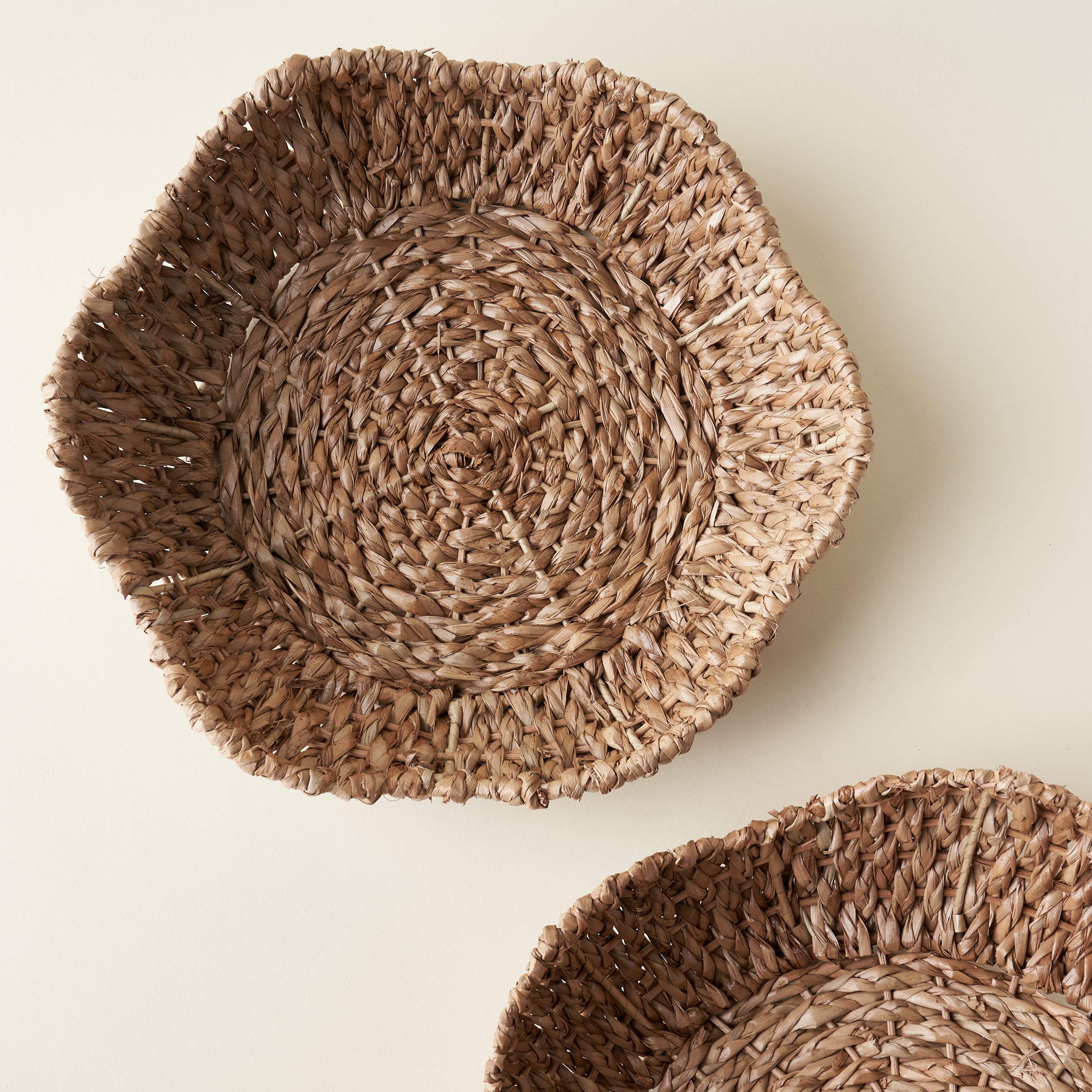 A foundational piece for a curated home, these braided bankuan bowls are a beautiful way to bring a sense of natural, artisanal style to your space. Each piece is meticulously handcrafted, with delicate scalloped edges that create a lovely, textural accent.