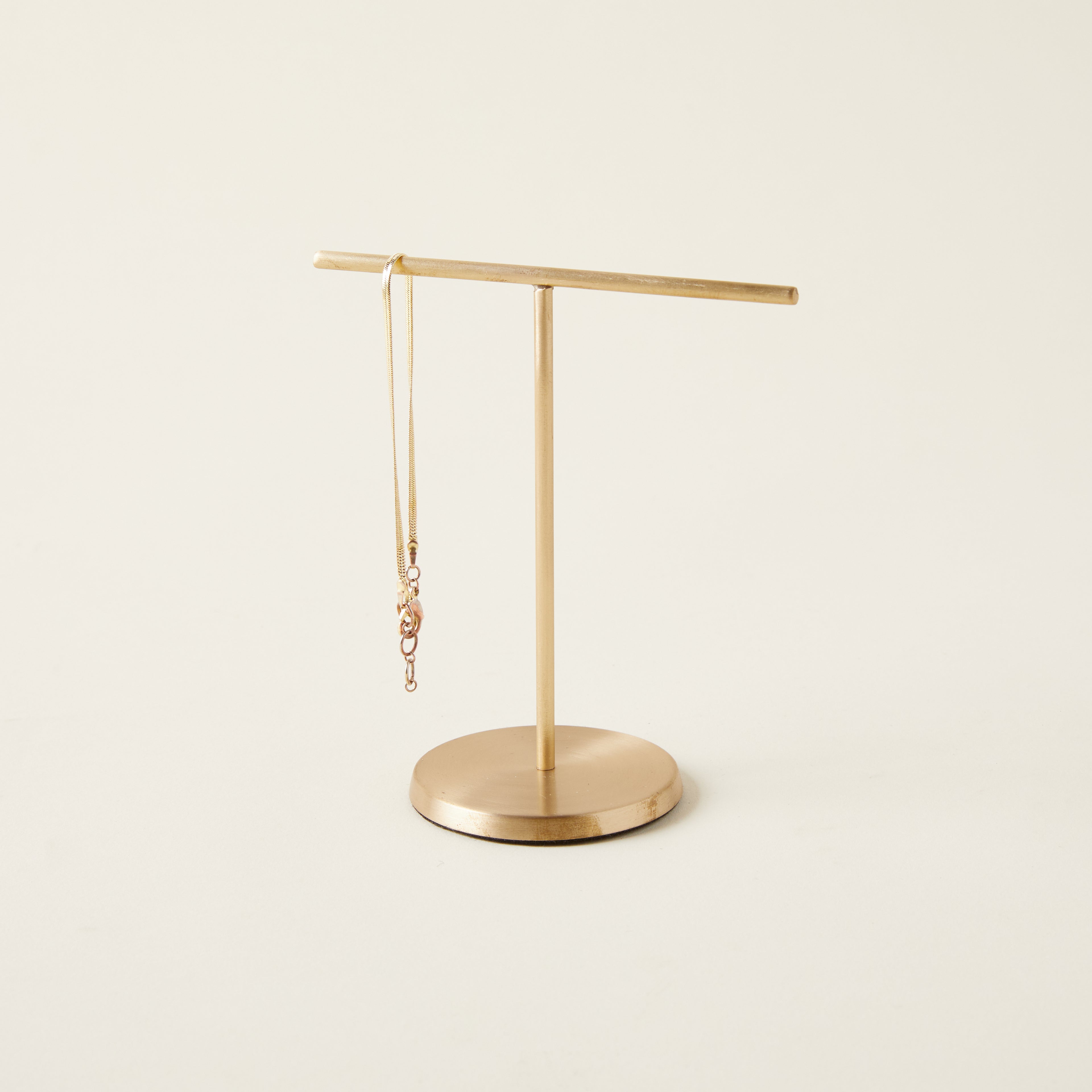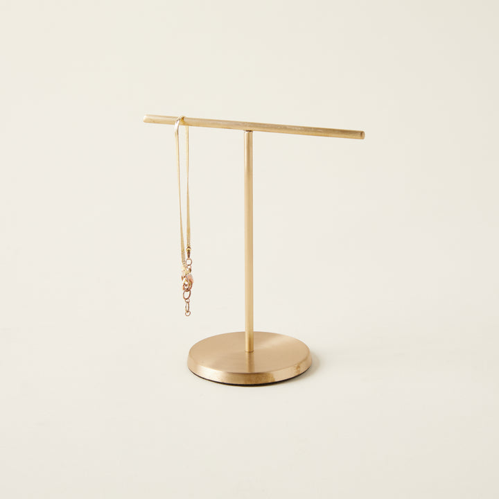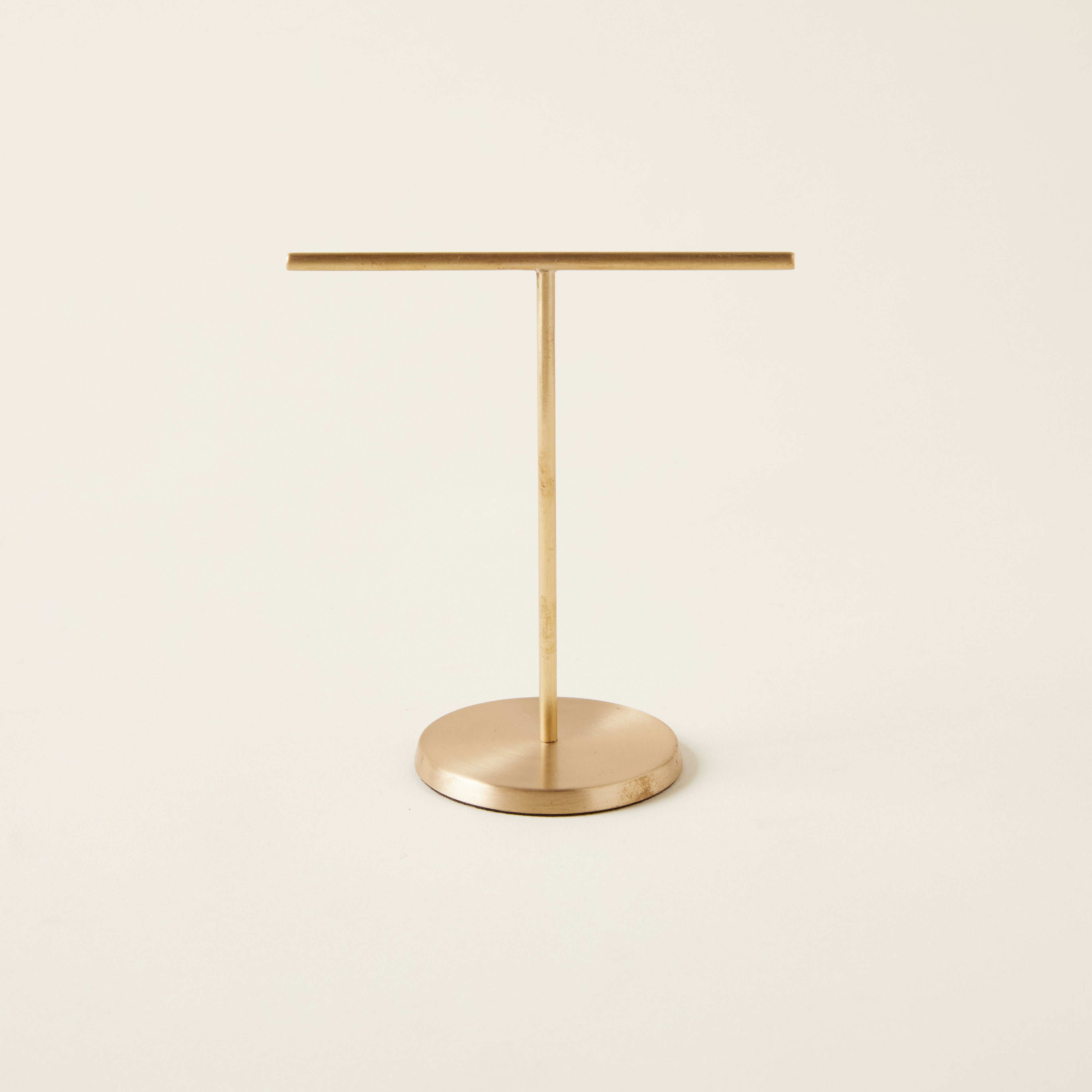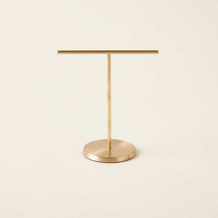 A functional and stylish accent for storing rings, bracelets, and more, this Brass Jewelry Stand is both durable and visually appealing. Its simple design allows for easy hanging. Due to its handmade nature, each stand is unique and some irregularities may occur.