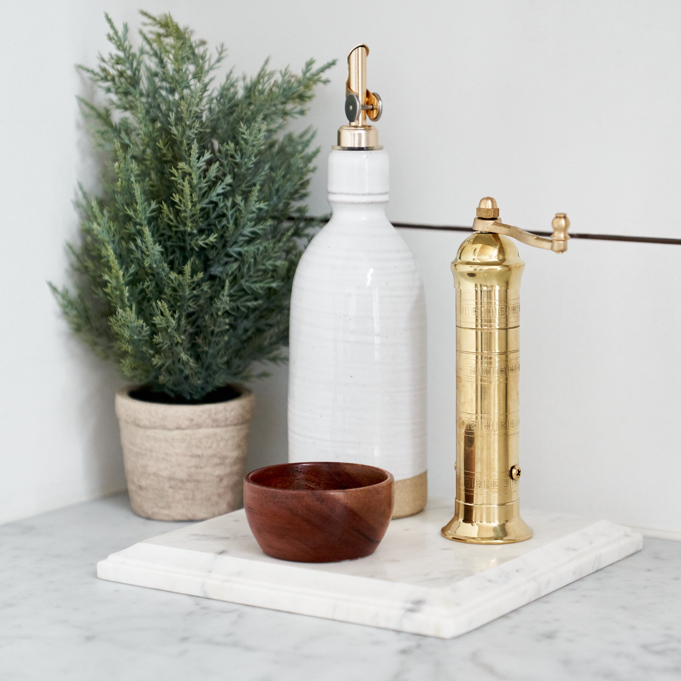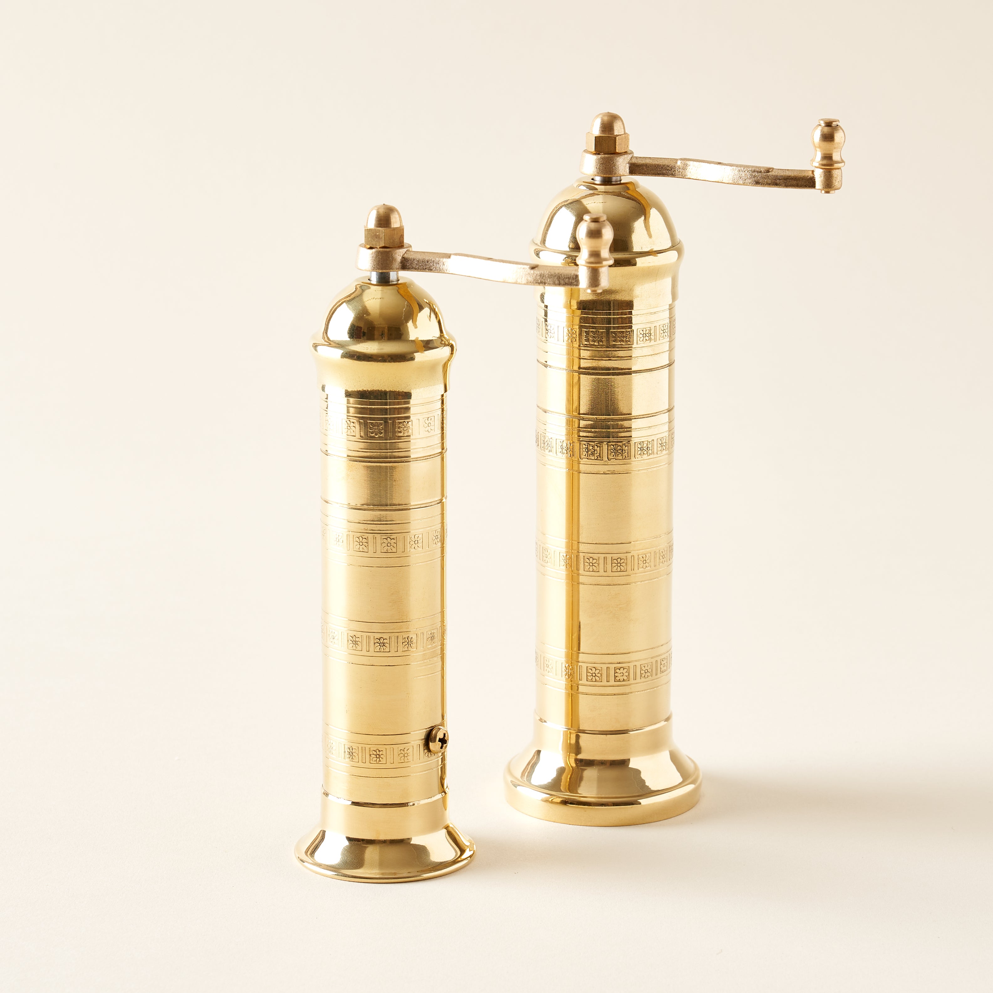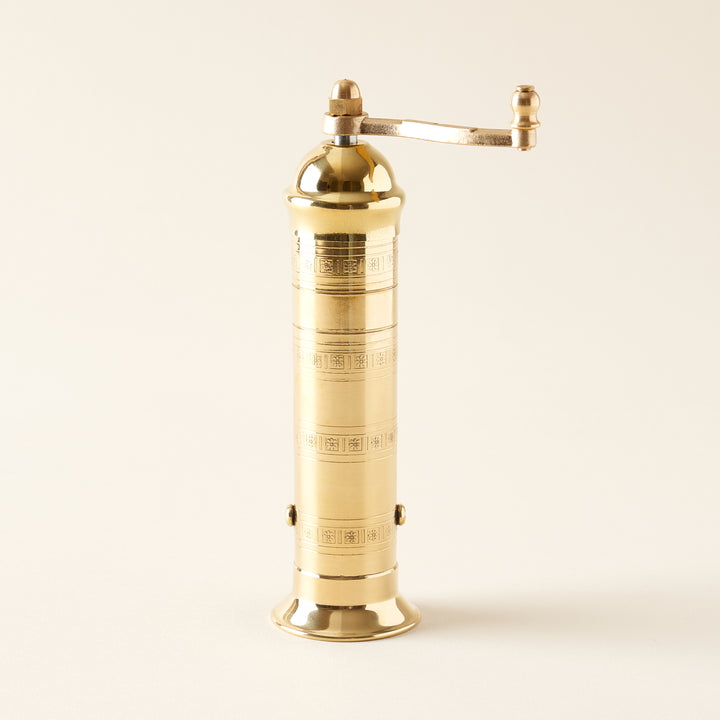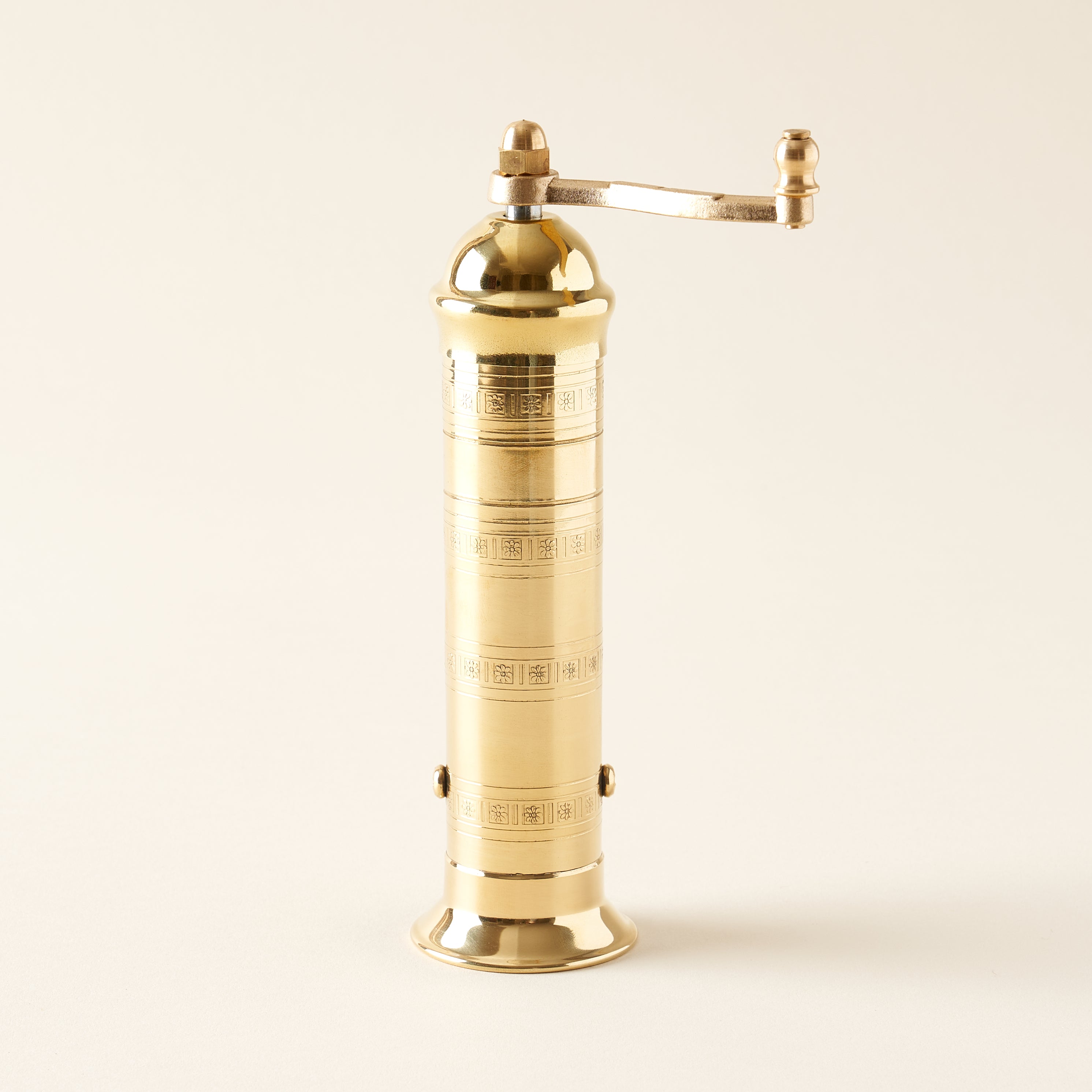 Handcrafted in Greece, this Brass Pepper Mill is a product of high quality. Equal parts stylish and functional, this timeless kitchen tool features a durable polished brass body and long arm for easy grinding. Keep displayed on your countertop when not in use.
