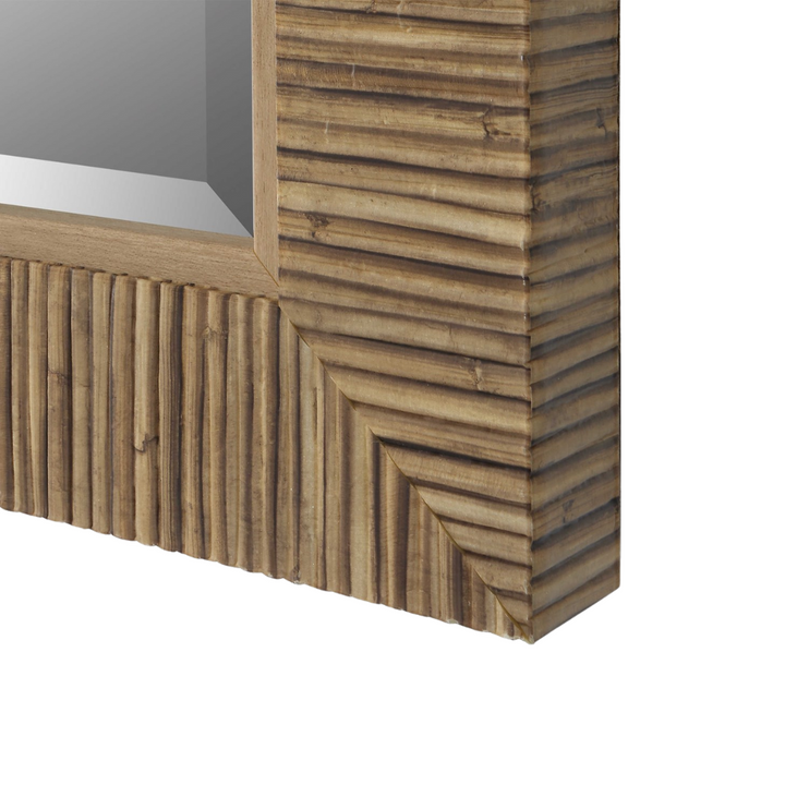 Elevate your home decor with this stunning coastal-inspired rattan frame wall mirror. It's natural texture and versatile design add a touch of warmth and character to any space. The 1-inch bevel creates a sophisticated look, while the durable construction ensures it will last for years to come. Whether you're designing a bathroom or a living room, this mirror is a beautiful and functional addition that will elevate your space.