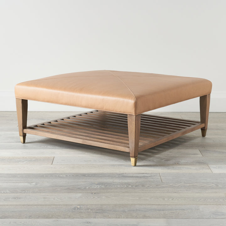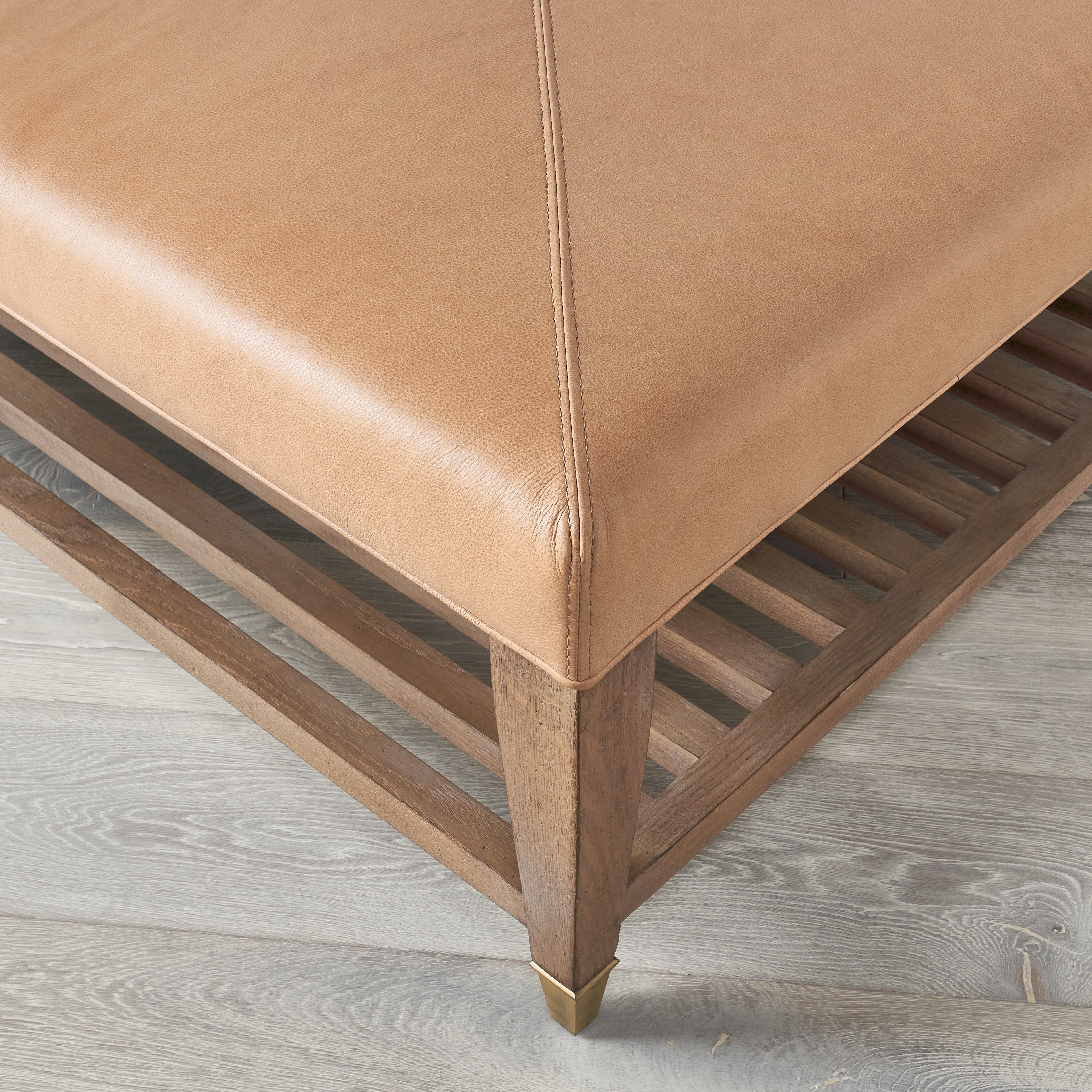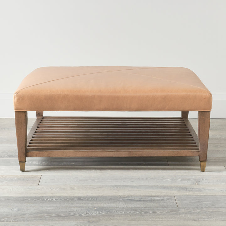 The Buckley Ottoman is the perfect addition to any living space. Crafted with beautiful leather and featuring a slat shelf at the bottom for extra storage, this piece is part of the KMH Upholstery Collection. Enjoy extra seating and storage while adding style to your home. Choose between three fabric options.
