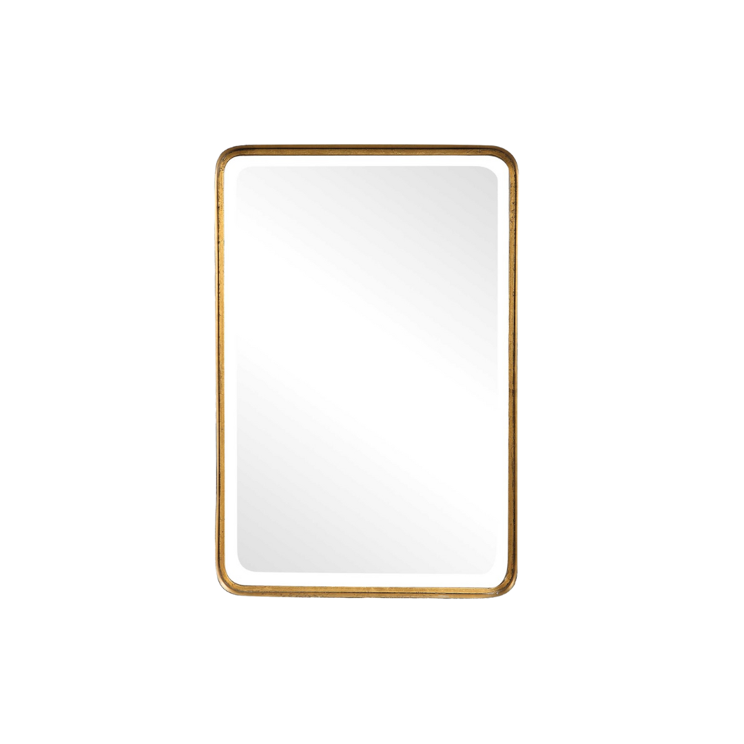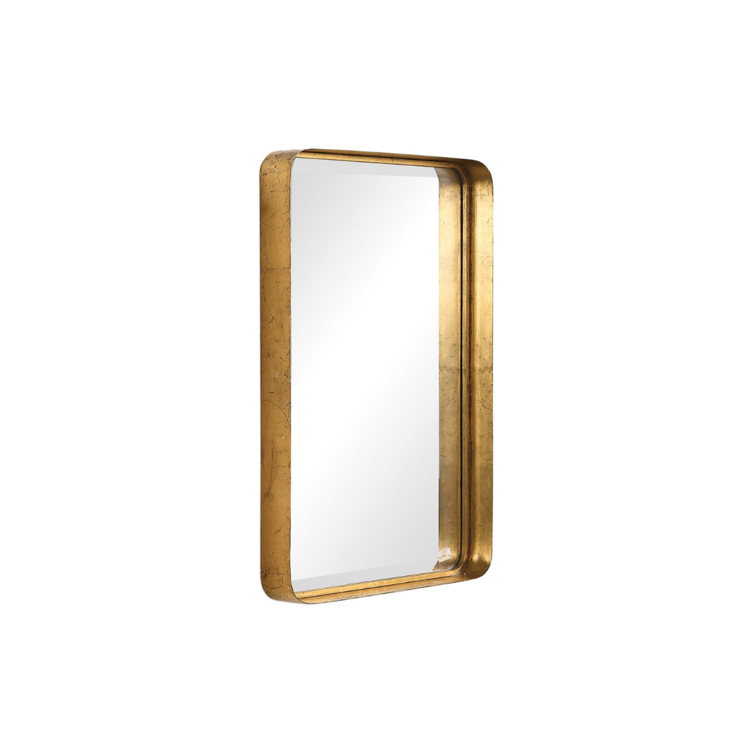 Elevate your daily routine with this elegant and versatile piece. Styled as a vanity mirror, the Caley Mirror offers a deep metal band with an inner ledge in an Antique Gold Leaf finish and can be hung horizontally or vertically.