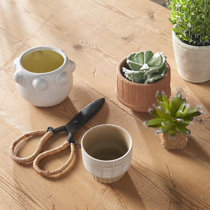 Cane wrapped forged iron scissors to use as indoor garden shears or in an office.