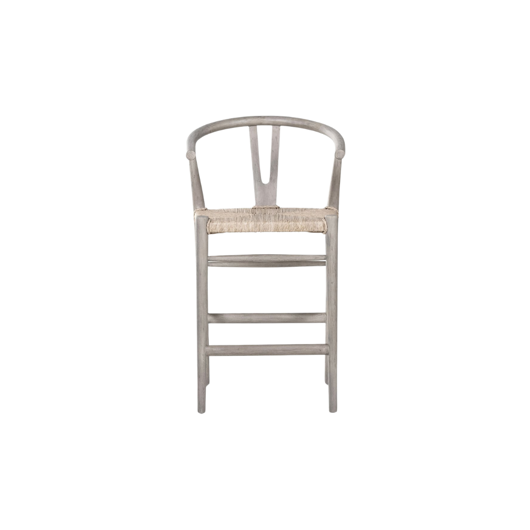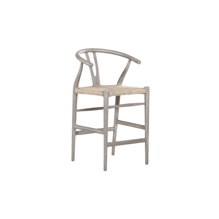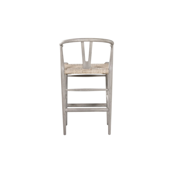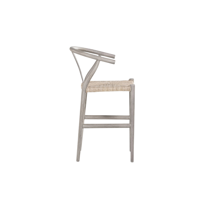 Embrace modern design with the Carter Bar + Counter Stool. Crafted with vintage white wicker and weathered grey teak, this wishbone-style stool adds texture and style to any space. Use it indoors for a touch of outdoor inspiration or enjoy outdoors and keep covered during inclement weather.