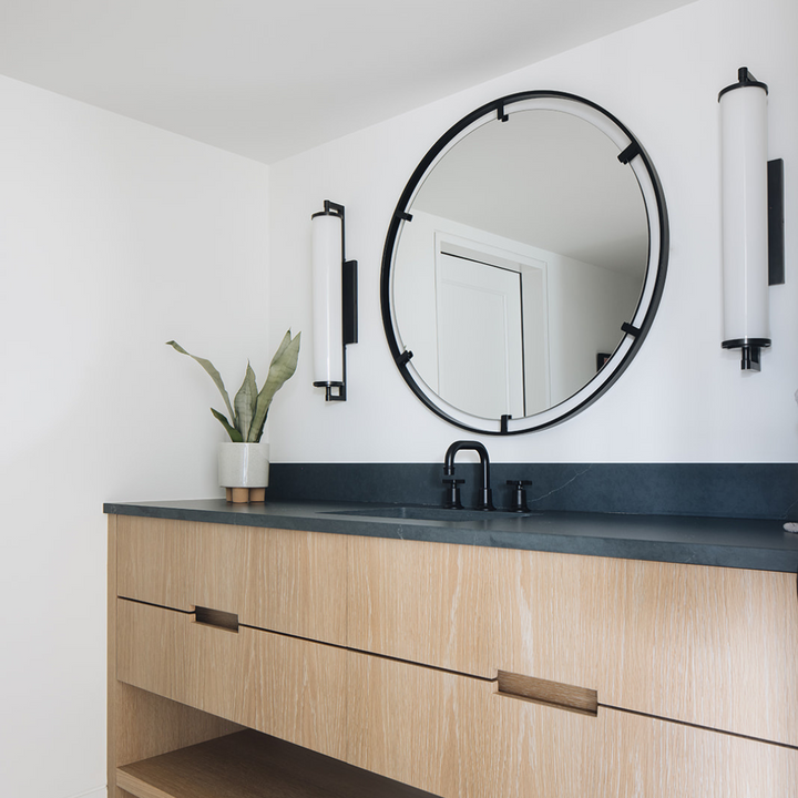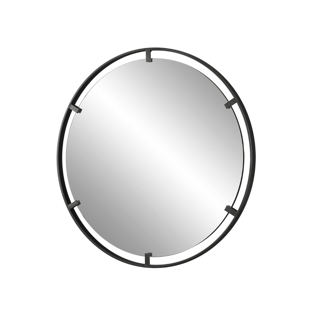The Casandra Round Mirror has a refined iron frame finished in a sleek satin black, embracing a floating polished-edged mirror.
