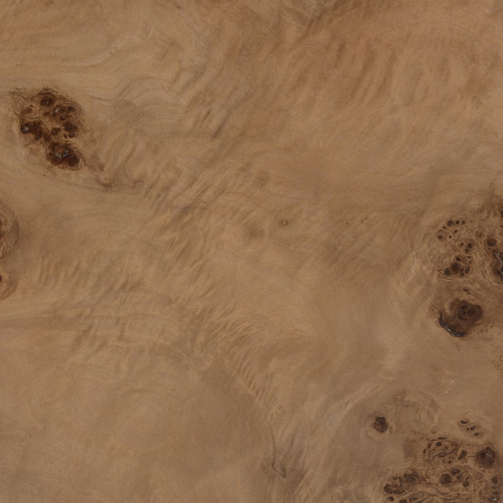 A beautiful way to add both natural artistry and style to a small space. This table, with a simple drum shape, showcases the richly grained caramel burl veneer. Its compact size makes it an ideal fit for smaller spaces, and the beautiful natural wood makes it a beautiful and unique accent piece.