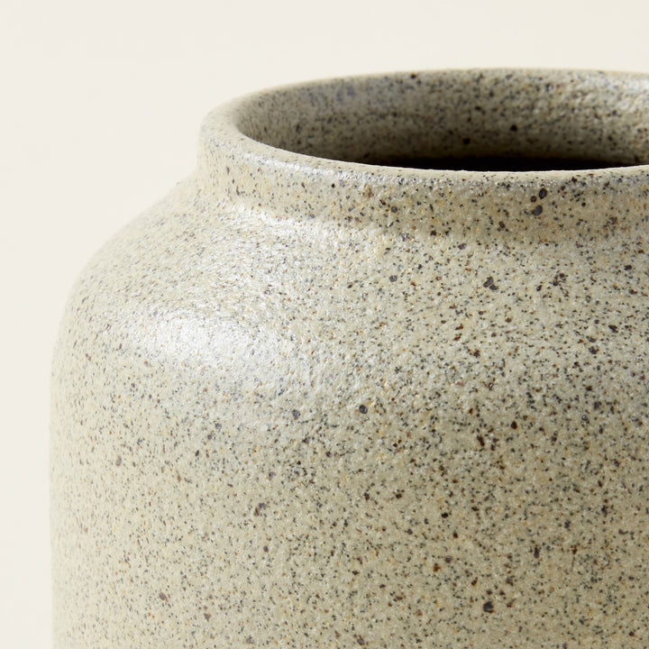 Handcrafted from clay, this global-chic vessel is finished with a satiny speckled gray glaze for a fresh feel. Sure to stand out on their own, we love them filled with a colorful arrangement or a few choice stems.