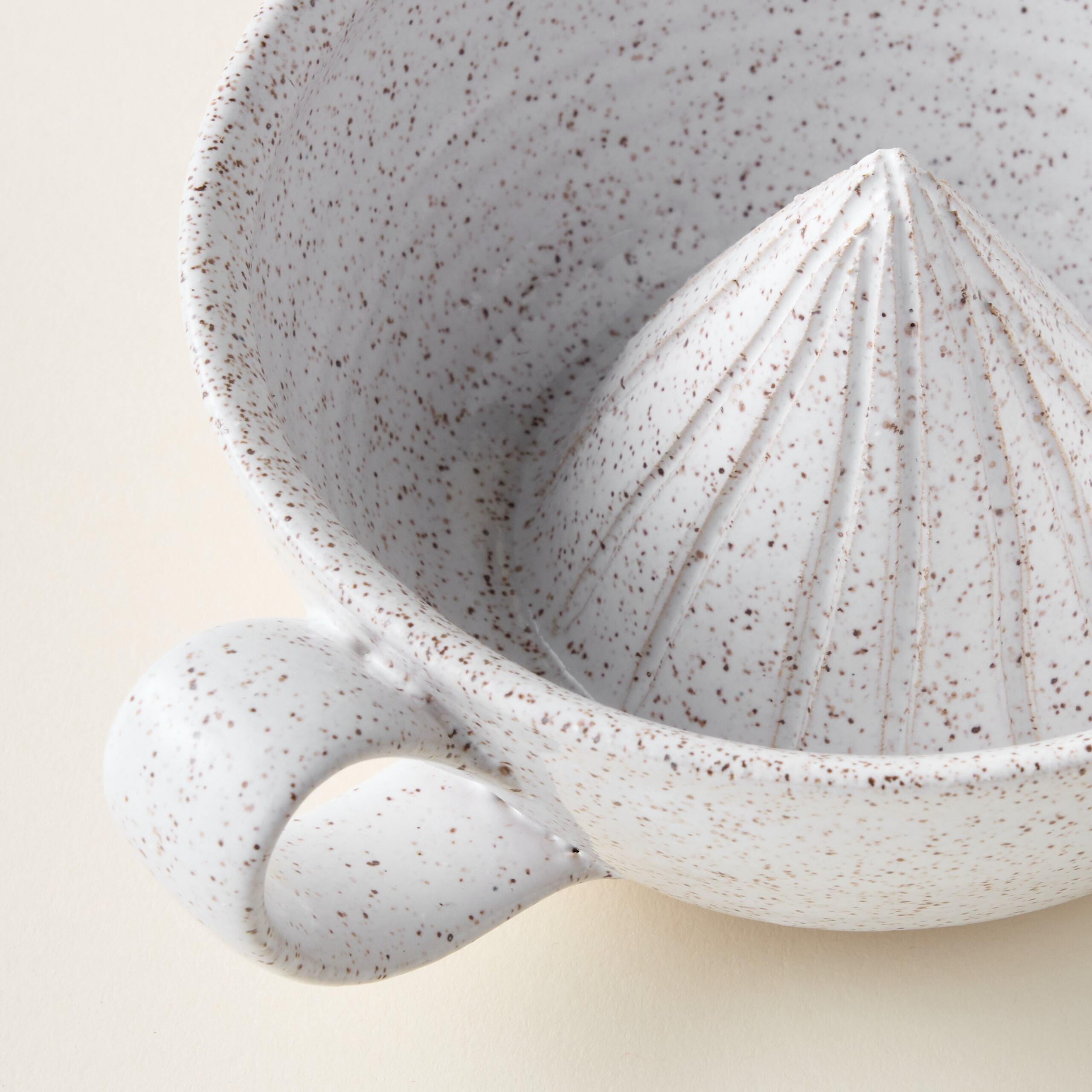 This Ceramic Juicer is the perfect addition to your kitchen. Hand-thrown and altered for everyday use, it is both microwave and dishwasher safe. Get all the juicing you need with the convenience of a microwave and dishwasher. Enjoy fresh juice whenever you want!