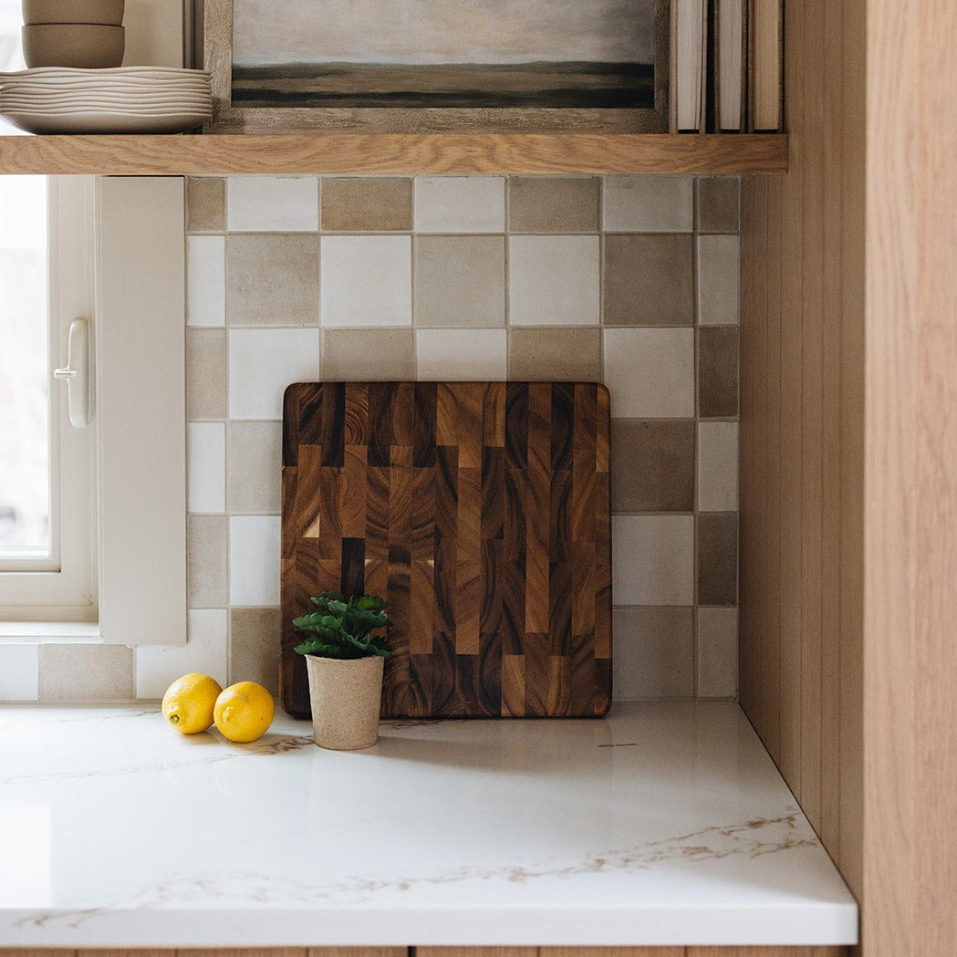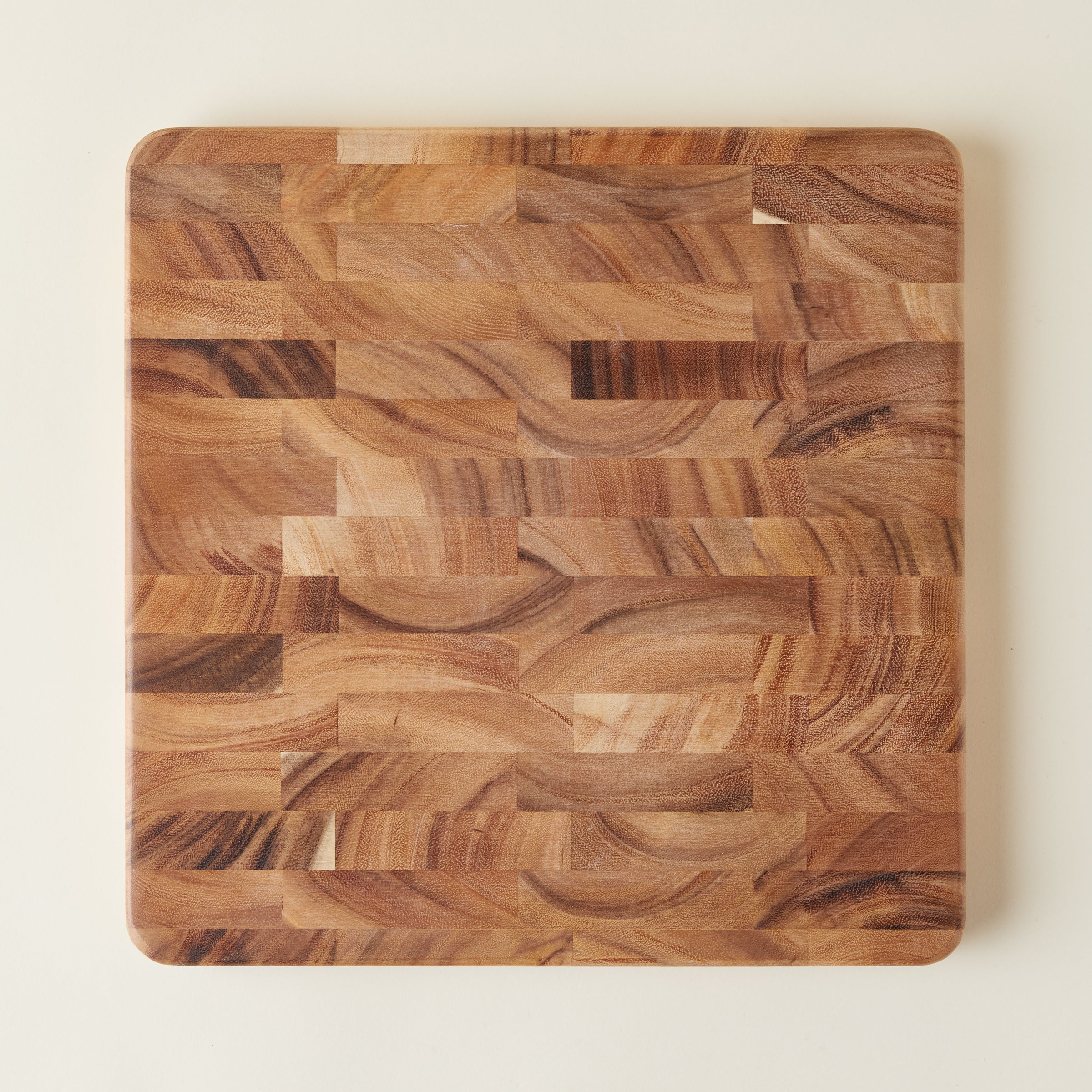 Made of gorgeous acacia hardwood, the Charleston Cutting Board is a top-of-the-line chef's board that offers functionality and beauty. Made in Thailand, its end-grain construction minimizes wear and tear on both cutlery and the board, ensuring longevity for all your cutting tools. This multi-functional board serves as a prep station, cutting, and serving board, making it a must-have for any kitchen.
