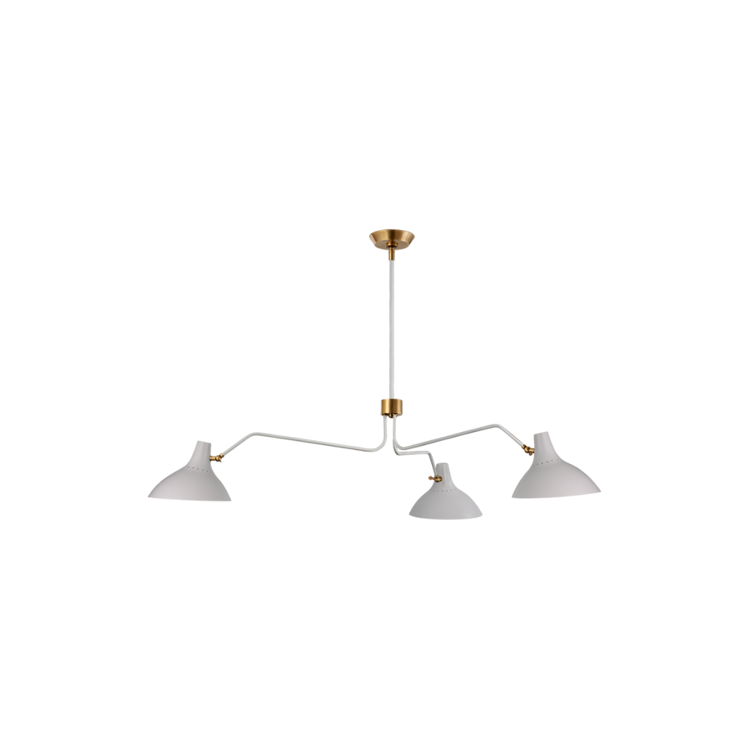 The Charlton large triple arm chandelier in white works well in many rooms. Recently used in the guest bedroom of our Salty Rose property, this chandelier would also work well in a living room. We recommend insulation be done by a licensed electrician.