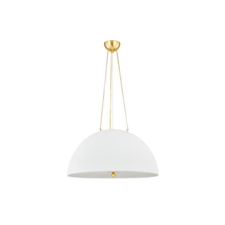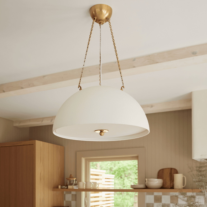 Experience elegance and versatility with the Chiswick Pendant. The clean and streamlined design features a classic-chic White Plaster dome shade, adding a touch of sophistication to any space. The petite chain and metal finial detail, inspired by jewelry, elevate the modern pendant and provide a refined, polished look.