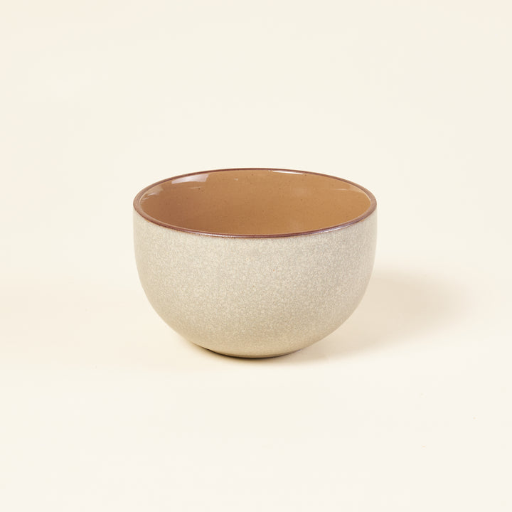 The Snack Bowl is a simple ceramic bowl, but with style and neutral panache in spades. Perfect for holding your favorite snack or a small plant, it features a rubbed rim and twice-fired finish with crystalline glaze. Holds 10 oz.