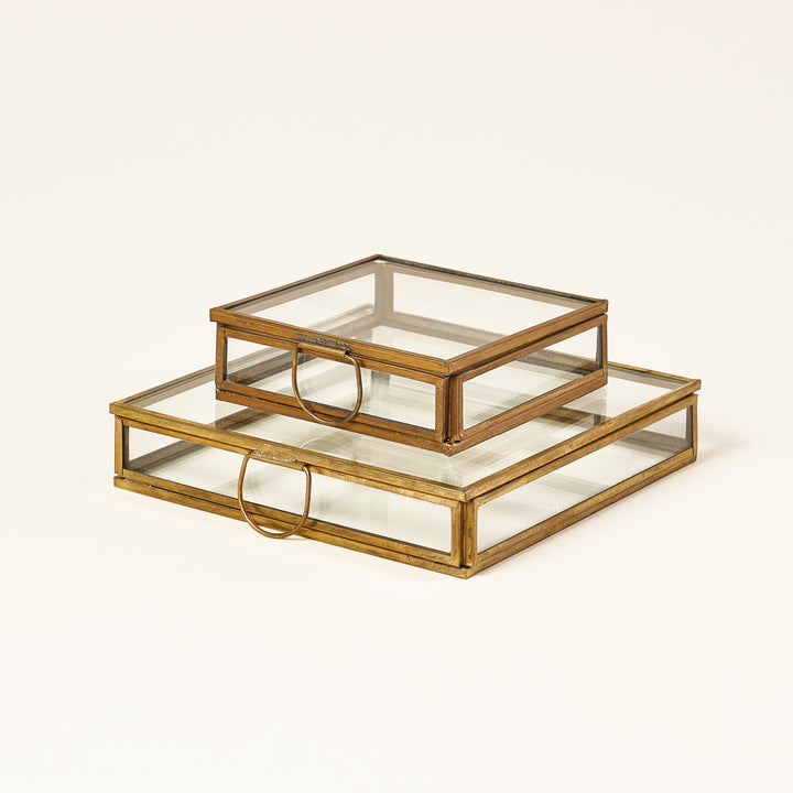 A thoughtful accent for your space, this Brass and Leaded Glass Display Box is a beautiful way to honor your favorite keepsakes. Its simple, architectural form and clean lines bring a sense of serene, sculptural style to a vanity or console.