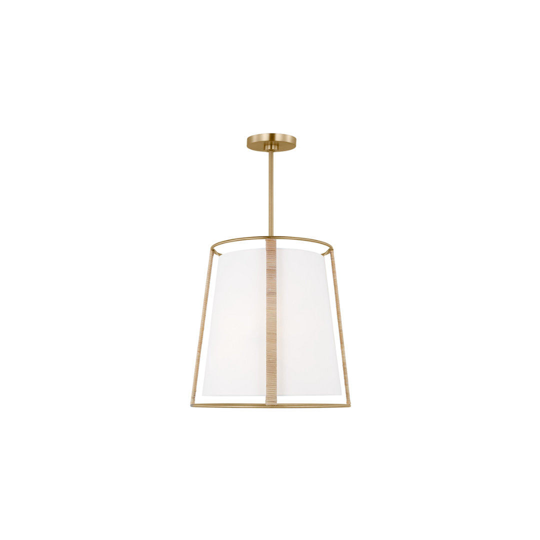 Designed to bring a touch of modern elegance to any space, the Cortes Hanging Shade effortlessly combines a relaxed, breezy silhouette with refined features. The rattan-wrapped steel spokes and white linen drum shade create a warm and inviting glow, perfect for covered patios, kitchens, or dining areas. Finished in satin brass, this damp-rated fixture adds a versatile touch to any home.