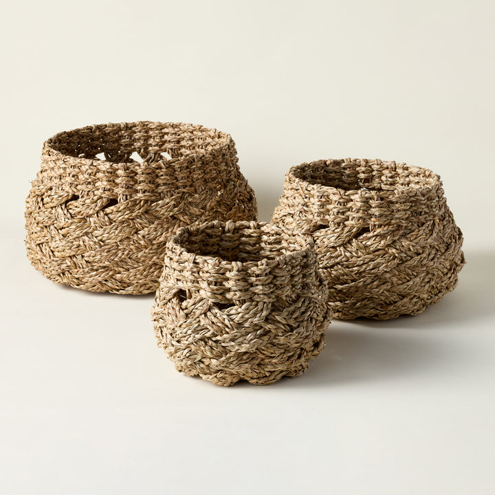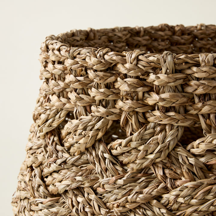 Add a touch of natural texture and artisanal warmth to your home with these handwoven seagrass baskets. Their durable weave and sturdy construction combine beautiful form with essential function, making them an ideal solution for effortless organization. The warm, earthy aesthetic of the seagrass complements any decor, and their versatile design makes them a thoughtful choice for both storage and enhancing your curated home.