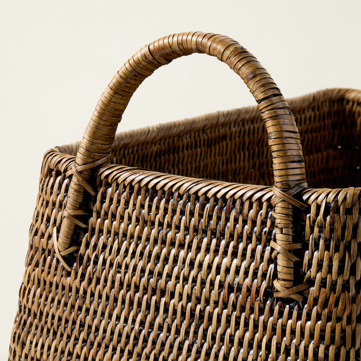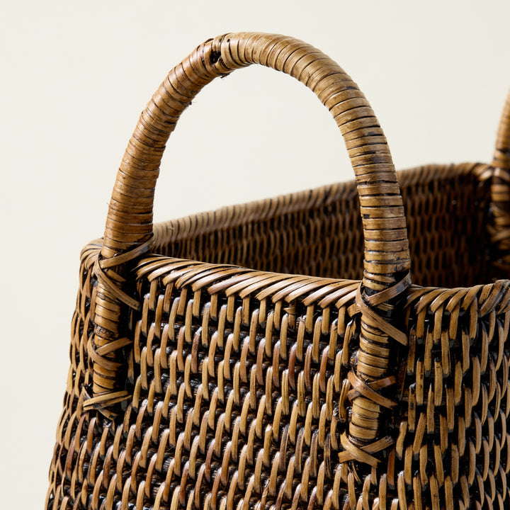 A true testament to the artisanal craftsmanship passed down from generation to generation, this handcrafted rattan basket is a beautiful and functional addition to your home. Its tight weave and warm brown finish add rich organic texture and visual interest wherever placed. This thoughtfully made piece is a timeless essential for adding a touch of curated style and effortless organization to any space.