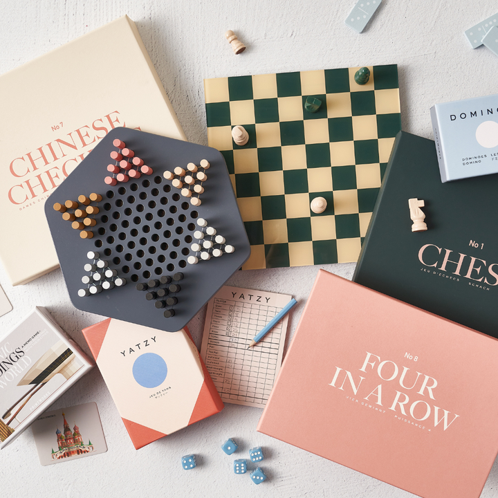 Domino in a new aesthetic twist looking equally good played or displayed. With a sober palette and distinct graphics. this Domino game guarantees to give a playful color injection to any home interior. Our Domino game includes 28 wooden game pieces and easy to read instructions in English, French, and German. Recommended for up to 6 players and ages 4+.
