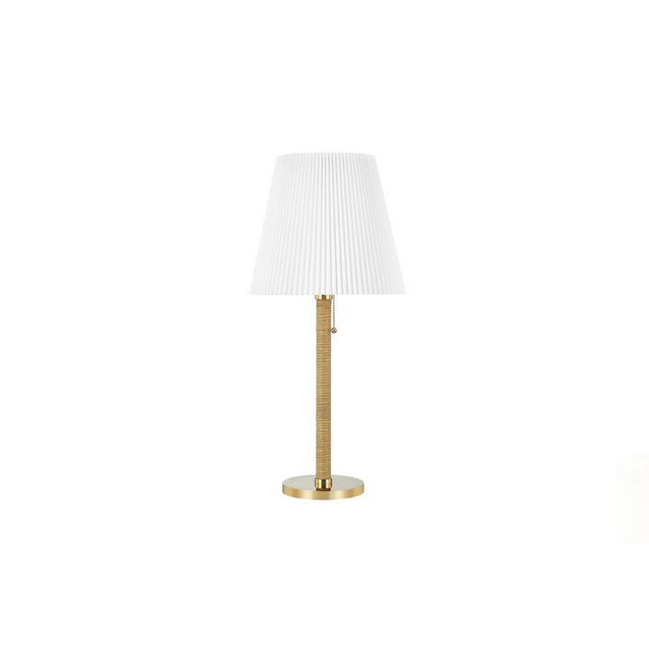 Expertly crafted, the Dorset Table Lamp brings relaxed living and organic texture to any space. The pleated shade and carefully wrapped rattan accents add a sophisticated touch to this statement table lamp.