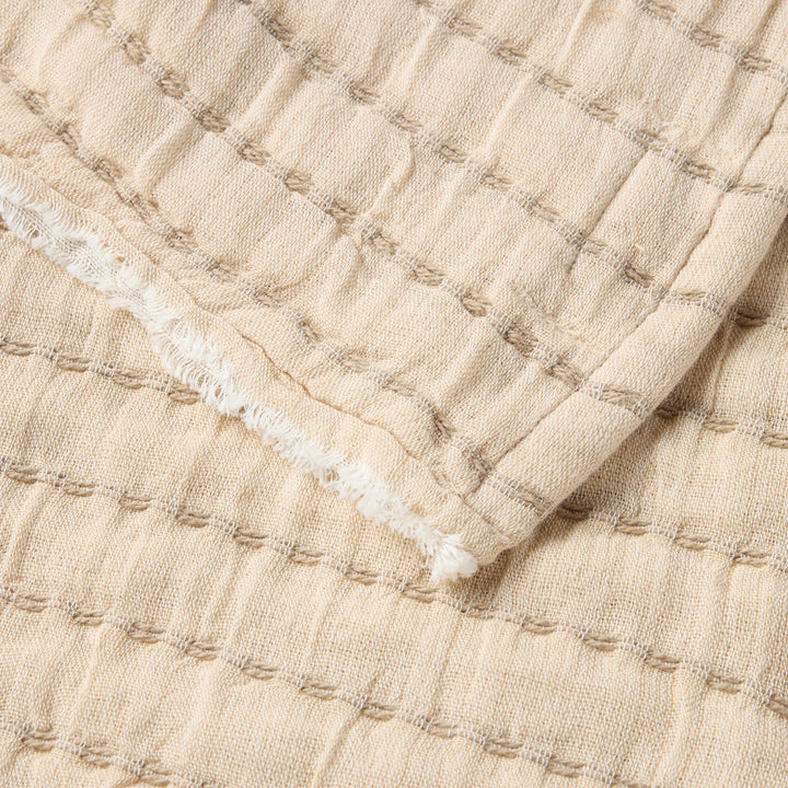 Crafted from soft, breathable double-gauze cotton, this throw is an elevated essential for cozy relaxation. Its unique two-tone, double-sided design offers remarkable versatility, allowing you to effortlessly switch between styles to complement any decor. With its lightweight feel and ability to add a layer of natural texture, this throw is perfect for styling a sofa, chair, or bed. It adds a timeless touch to your living space, making every moment of relaxation feel thoughtfully curated.