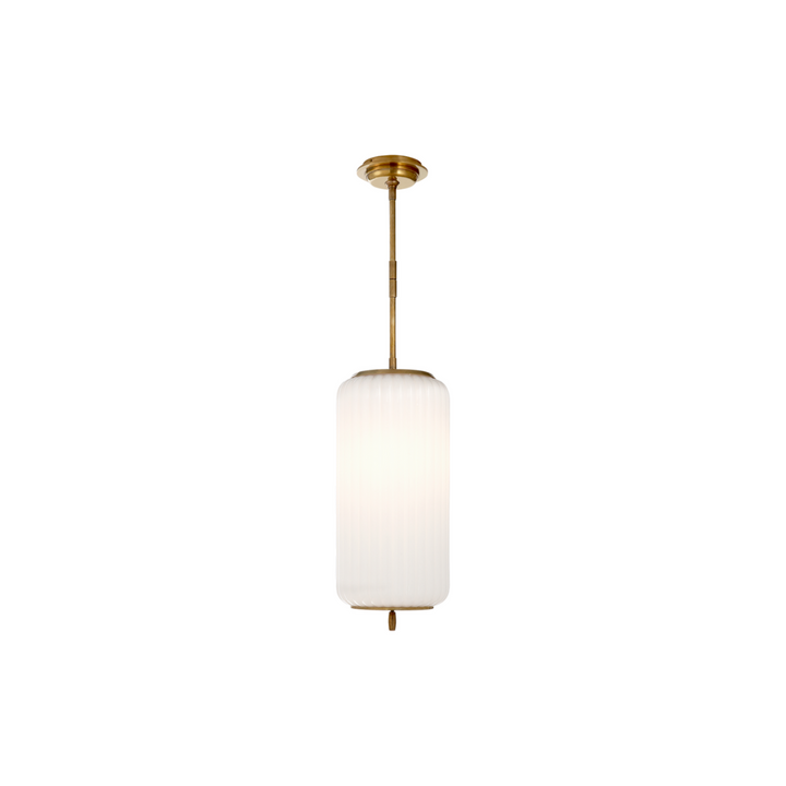 The Eden Pendant by Thomas O'Brien features a hand-rubbed antique brass finish paired with a white glass shade, creating a timeless ceiling light that blends classic elegance with modern design. Its medium size makes it ideal for adding refined illumination to dining areas, kitchens, or entryways, enhancing ambiance with a warm, inviting glow. Crafted with attention to detail, this pendant offers both style and durability, making it a sophisticated choice for elevating your interior lighting scheme.