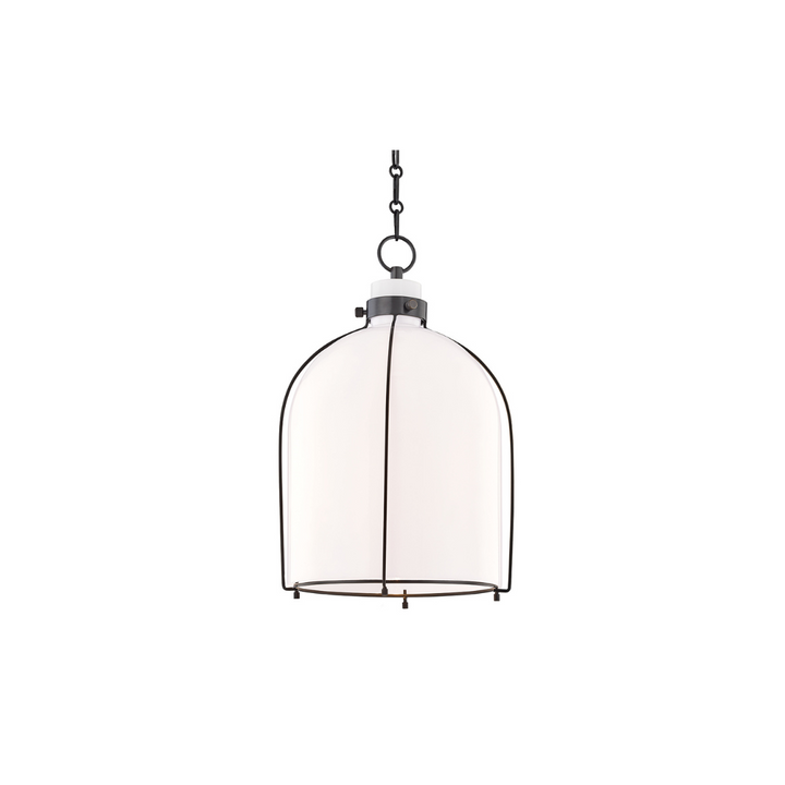 The Eldridge Pendant combines minimalist design with striking style, featuring a glass shade that beautifully diffuses light to highlight the lamp socket inside. Featuring an Old Bronze finish, this fixture is suspended from intricately crafted hook and loop chains, adding a refined, expert touch to any space.